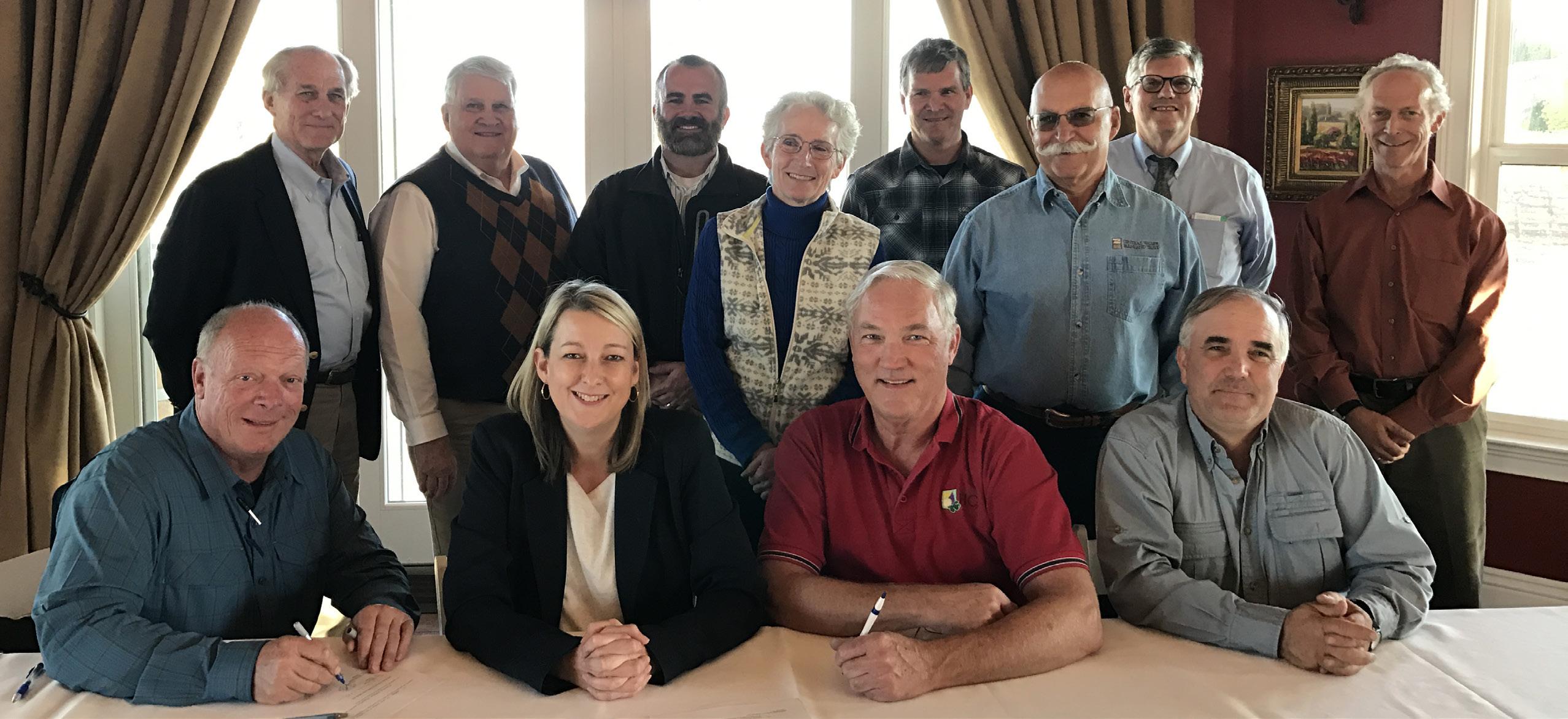 Brentwood Agricultural Land Trust board of directors and the Central Valley Farmland Trust board of directors formalize the merger on November 14, 2017. Left to right standing: Larry Ruhstaller, Jim Jorgensen, Patrick Johnston, Janet Caprile, Jon Harvey, Ron Freitas, Tim Byrd, Jim Gwerder. Left to right sitting: Tom Bloomfield, Barbara Smith, Maxwell Norton, Ken Oneto.