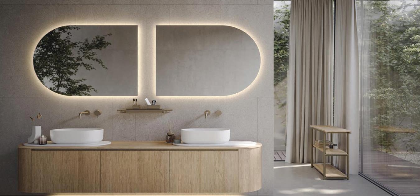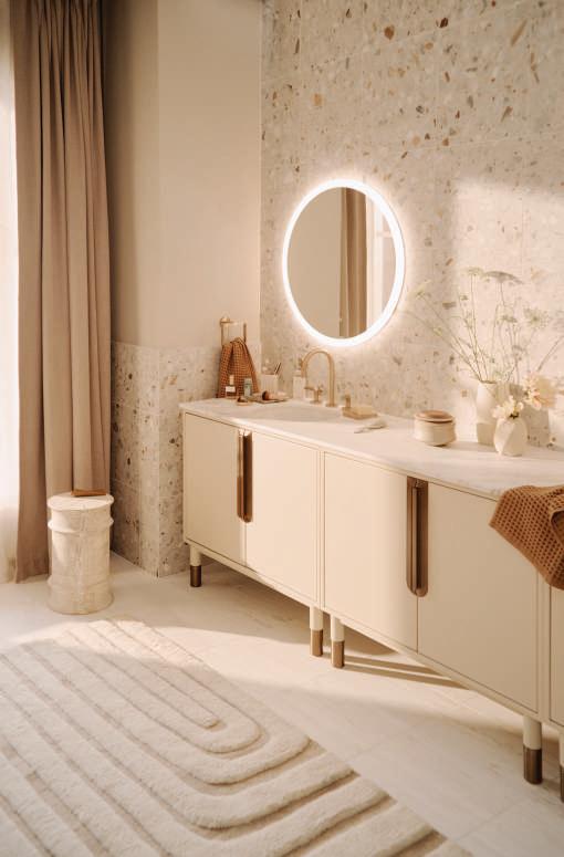 The Instinct mirror from Robern combines luxury with technology in a frameless, ultra-slim profile. Available in a range of sizes, it integrates dimmable task lighting and tunable color temperature for optimal illumination. A built-in defogging function with auto-on setting ensures clarity after every shower, offering a seamless transition from daily routine to refined ritual. robern.com