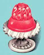 The instant and processed food products manufactured out of necessity during World War II changed the landscape of food preparation, and afterwards, advertisers continued to use marketing ideas of efficiency to sell Jell-O. But efficiency collided with an expectation that housewives should put more care into the meals they were preparing. To bridge this contradiction, women focused on presentation and extra ingredients, like adding cream into the gelatin to create an opaque layer or making a frosting of shrimp and mayonnaise. And shaped molds made it easy to create impressivelooking displays with minimal effort. To match the trend, Jell-O rolled out flavors like lime, celery, mixed vegetable, and tomato.