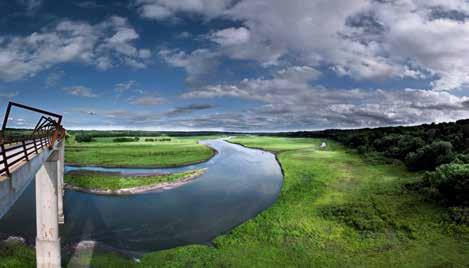 is a half mile long and thirteen stories high and spans the Des Moines River. Once dedicated to trains, it was transformed into a pedestrian and bicycle bridge that offers breathtaking views of the surrounding landscape. The design is inspired by the area’s rich mining history, featuring fortyone steel frames set at varying angles to represent the support structures commonly found in mine shafts. And at night, it comes alive with blue LED lights, providing a surreal and unforgettable experience.