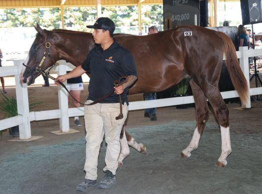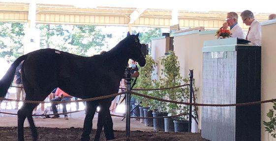 six fgures ($100,000). Te son of the late stallion Vronsky was bred and consigned by longtime sale supporter Harris Farms and was purchased by PT Syndicate #1 LLC and Richard Meister.