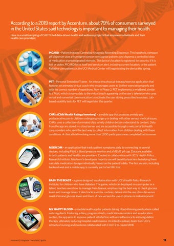 According to a 2019 report by Accenture, about 79% of consumers surveyed in the United States said technology is important to managing their health. Here is a small sampling of CALIT2-led data-driven health and wellness projects that empower individuals and their health care providers: