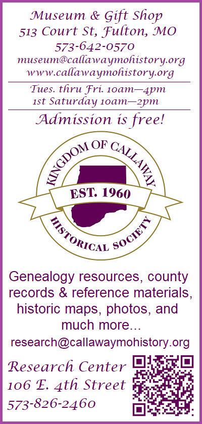 Kingdom of Callaway Historical Society 513 Court Street Fulton, MO 65251 (573) 642-0570
