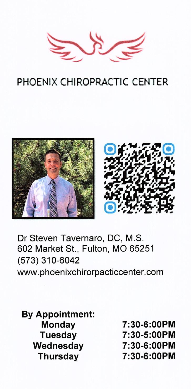 Phoenix Chiropractic Center 602 Market Street Fulton, MO 65251 (573) 310-6042