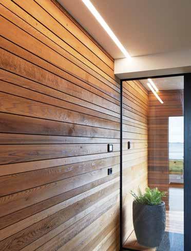 Cedar is utilised both internally and externally. The soffits are cedar clad as are feature walls throughout the home including the staircase between levels. Negative detailing throughout the interiors in place of skirting boards continue on this theme.
