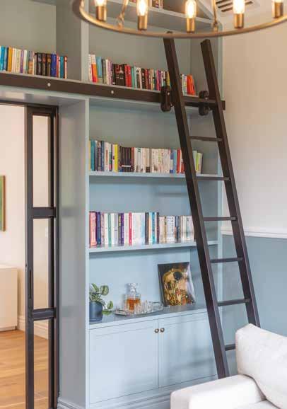 Off the kitchen is a media room where the family can stay connected to the main living space while chillin’ on an afternoon, and there is a newly formed library/ lounge “snug” which is home to a feature bookcase and bespoke library ladder.