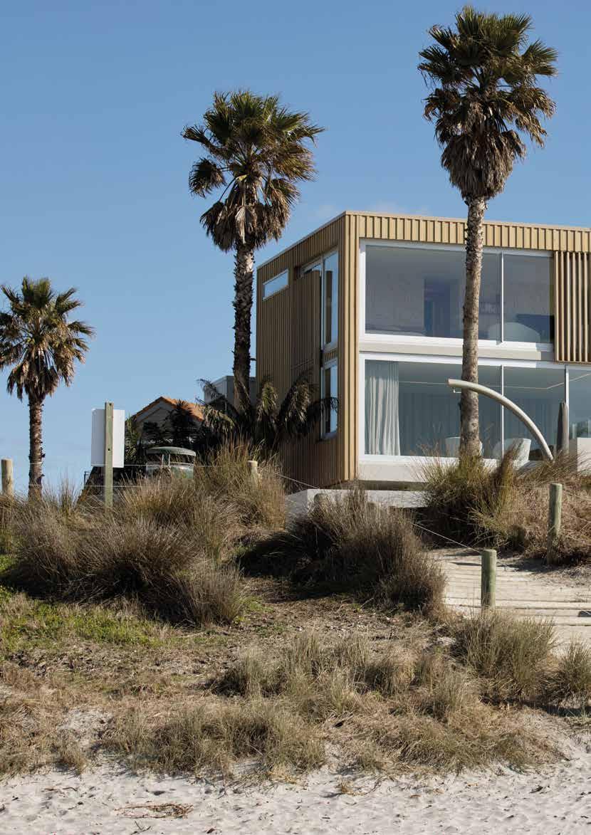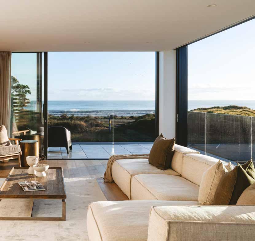 Rising from the dunes on the Ohope Beach coastline, this stunning multi-generational beach house seamlessly blends architectural innovation with coastal resilience.