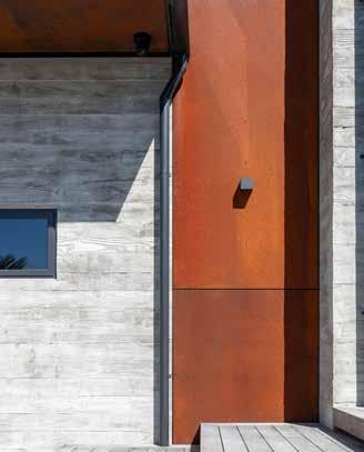 TThe exterior exudes strength and character with its use of Corten steel—renowned for its weathering properties and distinct rust-like patina—beautifully juxtaposed against board-formed in-situ concrete walls. These textured concrete walls, which also feature throughout the interior, required expert craftsmanship. Calley Homes were selected for their extensive experience with this specialised construction technique, where precision and risk management are paramount. The result is a refined, durable finish that perfectly suits the coastal environment.