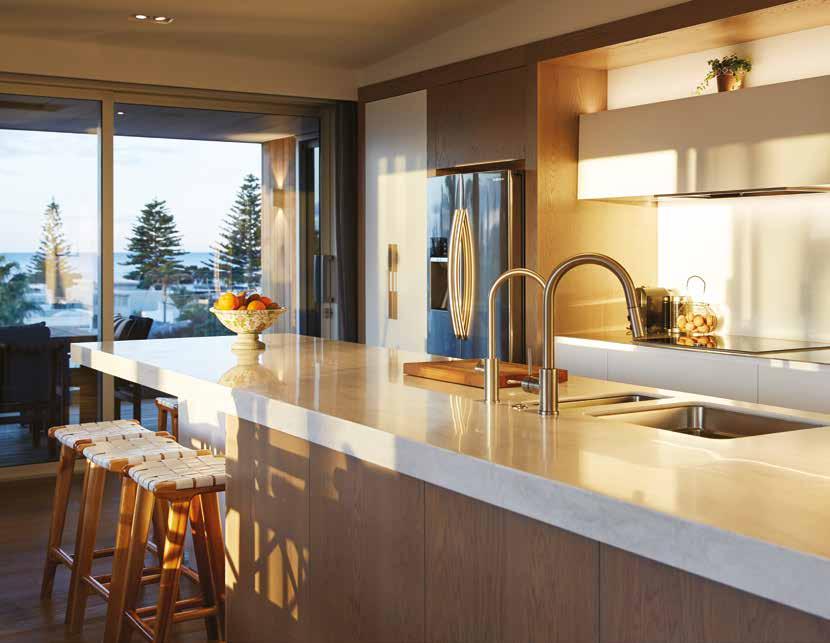 The designer kitchen is a sleek and stylish centrepiece perfect for entertaining and taking in the extensive views while providing connection to the lounge and dining spaces.