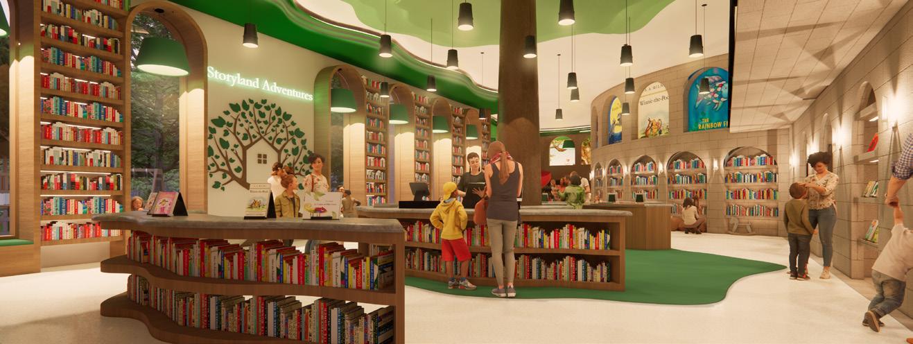 This retail space will prioritize children’s development by offering a curated selection of educational toys and activities that promote learning through play, while also fostering creativity and community through imaginative play areas and engaging events. Storyland Adventures is envisioned as a vibrant hub of exploration and discovery, designed to ignite children’s imaginations and cultivate a lifelong passion for reading and learning. The space features whimsical architecture, playful details, and vibrant colors that captivate young minds. Different types of lighting will enhance the experience across various zones, with soft ambient lighting creating cozy reading corners, brighter dynamic lighting stimulating energy in play areas, and task lighting providing focused illumination in creative zones. By thoughtfully integrating these lighting solutions, Storyland Adventures will cater to all learning styles, nurturing a welcoming environment that celebrates childhood joy and encourages holistic growth.