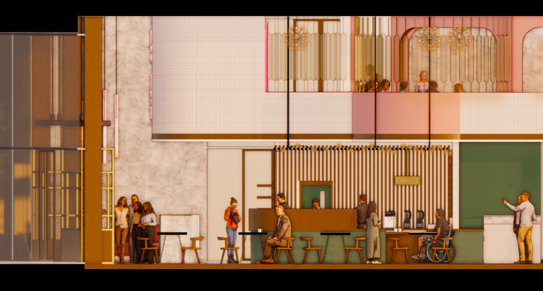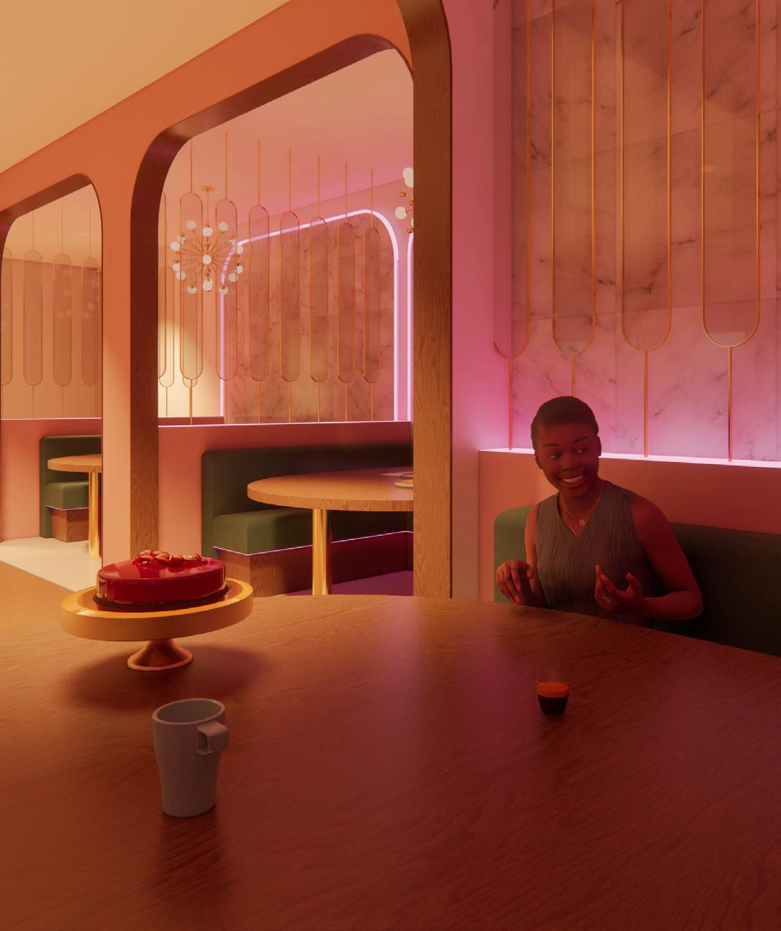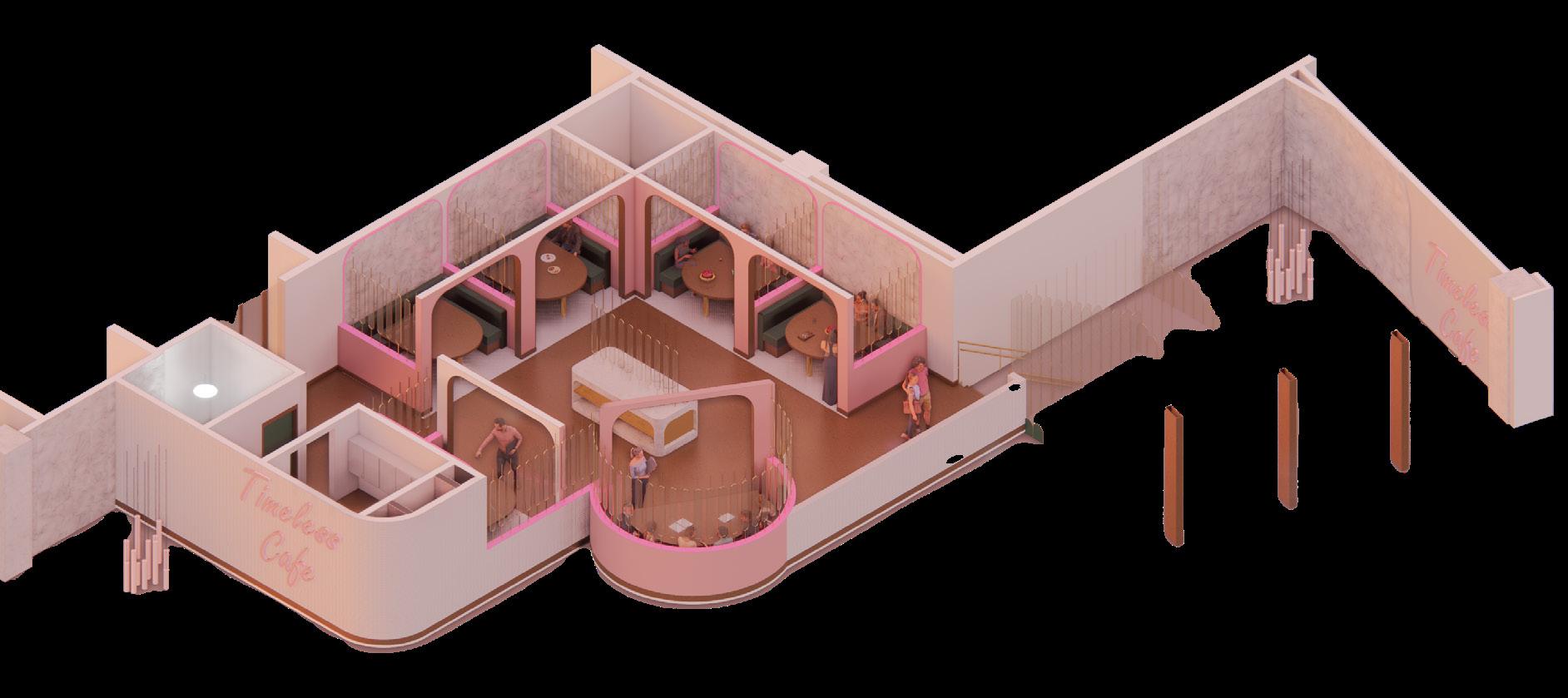 The inspiration for Timeless Café originated from the memory of my best friend’s wedding, a day filled with love, joy, and unforgettable moments. Drawing from this deeply personal experience, I sought to capture the emotional warmth, beauty, and shared happiness that weddings naturally evoke. The café’s design is carefully crafted to invite guests into an environment that not only reflects the charm and elegance of such significant life events but also allows them to connect with a sense of love and nostalgia. Through a blend of modern design elements and sentimental touches, Timeless Café offers a comforting and inviting atmosphere that embodies the uniqueness and intimacy of these cherished moments. The space is designed to bring people together, much like weddings do, fostering a sense of connection and celebration, while also offering the serenity and warmth that encourages reflection on life’s most beautiful experiences. In this way, the café becomes more than just a place to dine—it transforms into a shared experience of love, memory, and timeless emotion.
