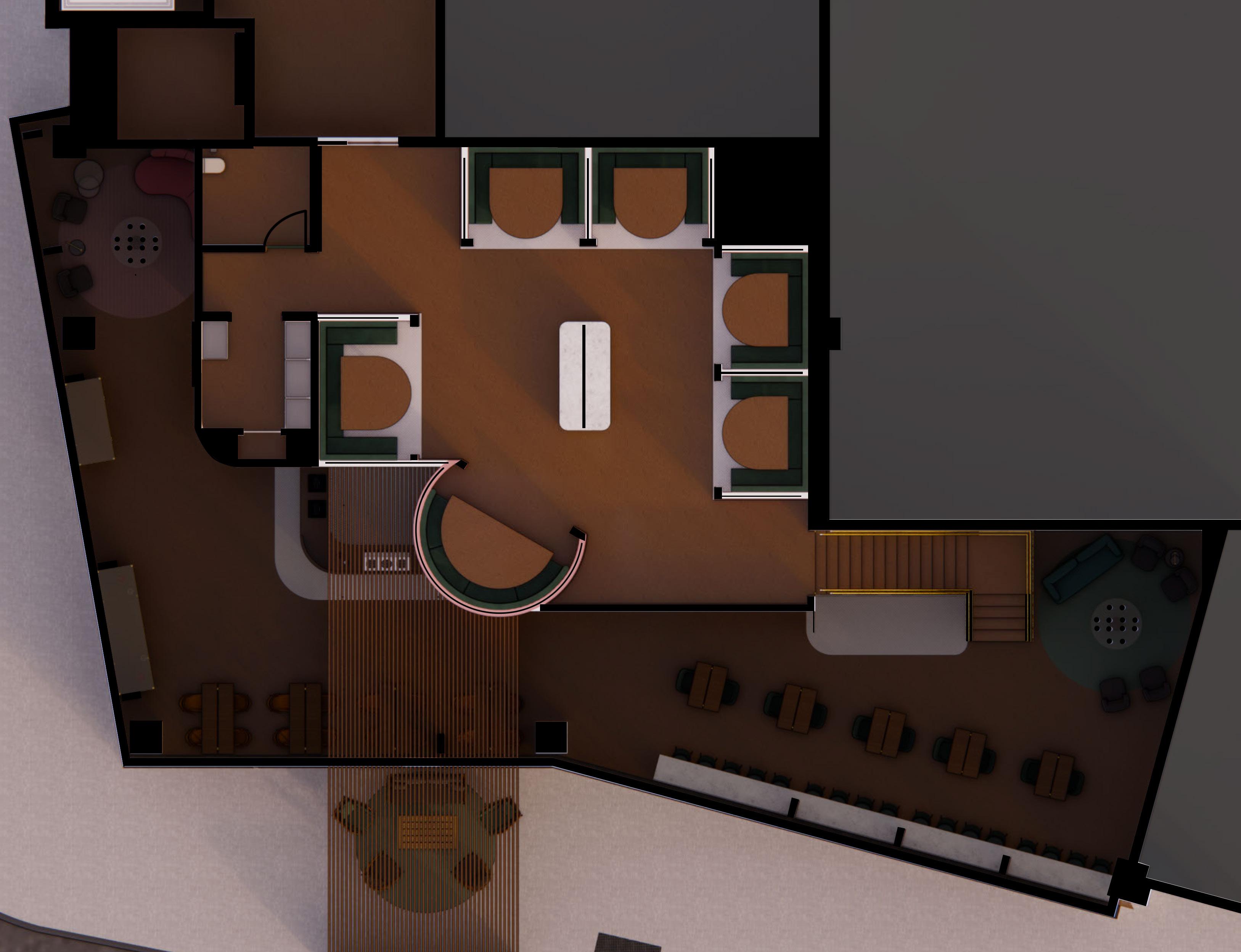 Guided by the distinct characteristics of Pilsen and The Loop, I further refined the spatial organization by aligning it with the creative process, thoughtfully distributing the “P’s” across both floors to create a cohesive and dynamic environment.