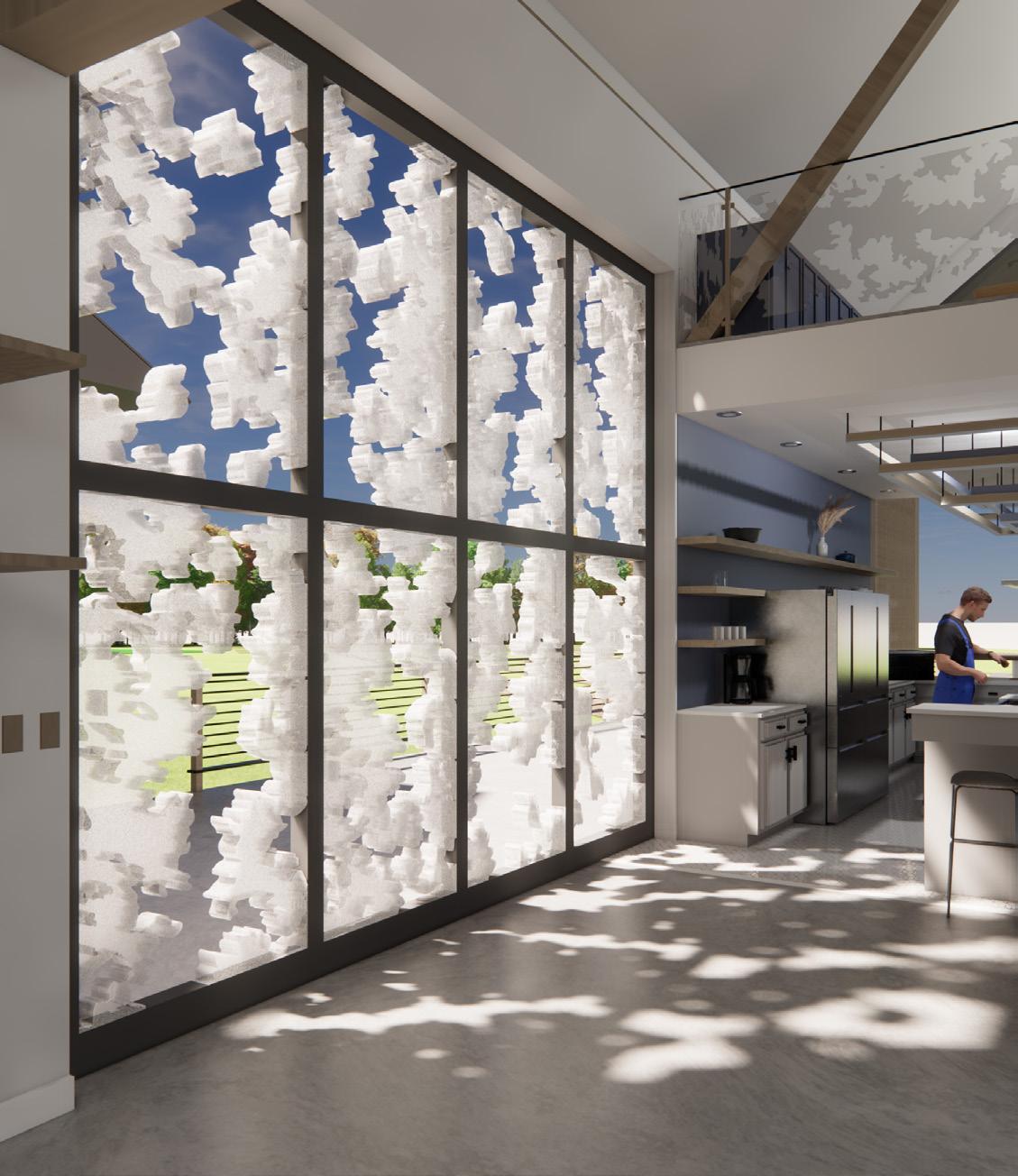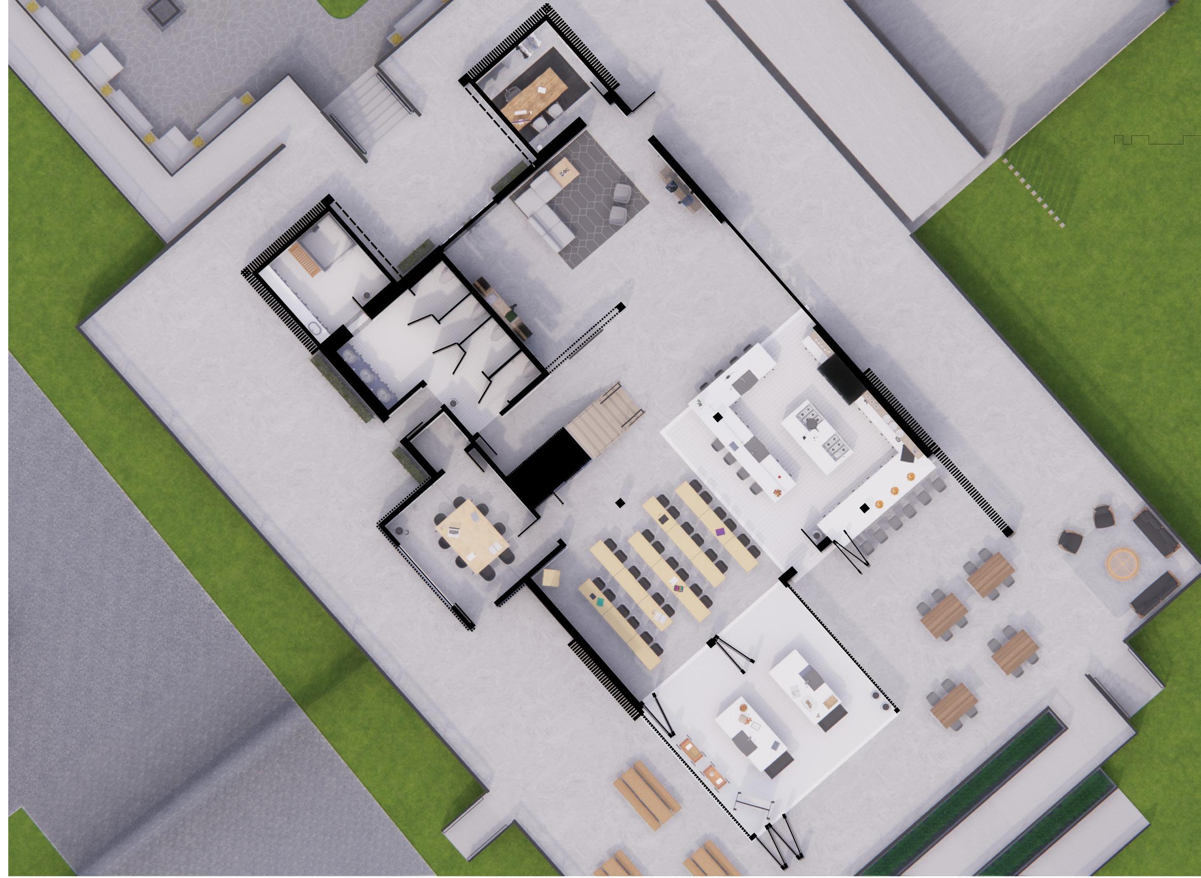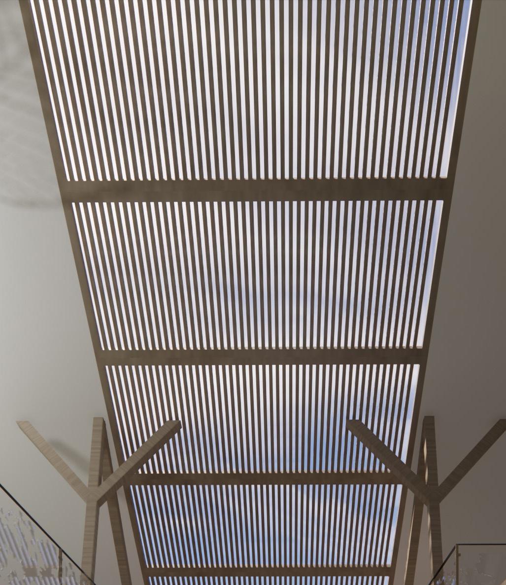 The initial inspiration for the concept development came from the site itself, through the apple trees, where I focused on creating layers within various spaces, applying this idea to both floor plans and sections. Further research into food forests revealed how different layers impact lighting, which led me to integrate the concept of crown shyness, ultimately influencing the diffusion of light throughout the design.
