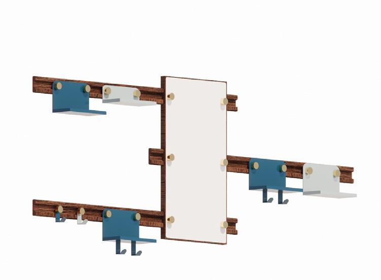 Homestasis entry set provides stability to the ever-changing people within a home. The console, bench, and wall organizer each feature movable parts and customizable elements in order to not only fit user needs, but also personalities. The set allows for homeostasis of users by allowing the opportunity to customize aspects of the pieces in the space where each day begins (the entry) to ease the stress of the day and create stability. Overall, the collection fosters a sense of unity and tranquility, ensuring your living space is both inviting and well organized.
