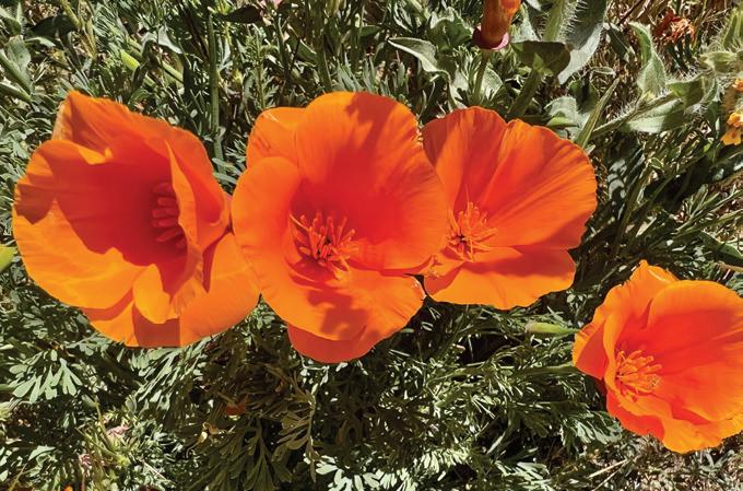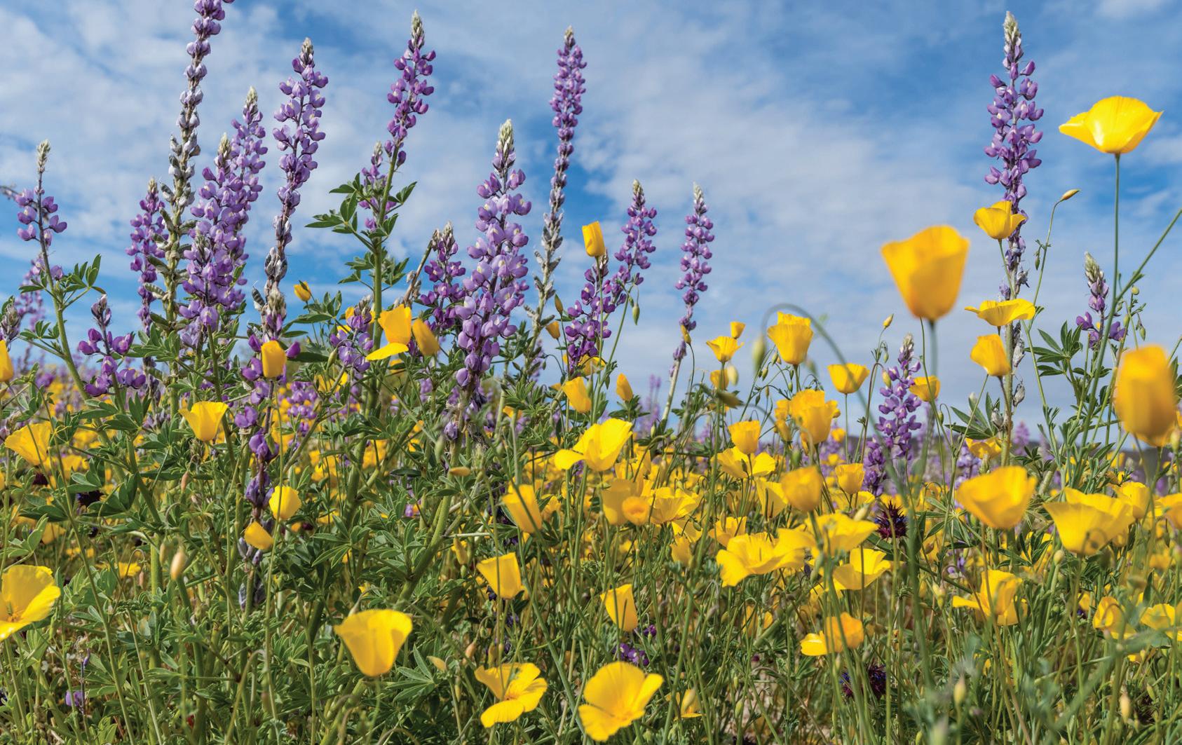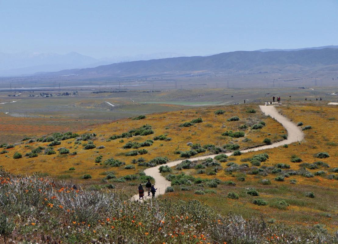Angeles County and the southeast portion of Kern County, Antelope Valley is at the western tip of the Mojave Desert. There I met the park docent, Ann, who has been a volunteer for 45 years. Along with dozens of other volunteers, Ann roamed the preserve answering questions and helping visitors stay on the trail as they walked in a trance from the overwhelming sight of wildflowers. This was an incredible year for California poppies, and intermingled within the carpet of orange were lupine, owl’s clover, and fiddleneck. In 1974, California State Parks Foundation purchased 940 acres of wildflower land here and deeded it to the Department of Parks and Recreation. This became California’s first “Poppy Park,” and it continues to inspire park-goers like me to this day!