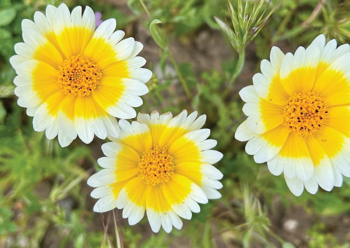 destination, Saddleback Butte State Park. I had the park to myself and hiked up to the ridge to see the snow-covered San Bernardino Mountains and across Antelope Valley. I was in the high desert here, but the wildflowers were just as abundant. It was hard to walk more than 20 feet without finding a new species. I was greeted by California evening primrose, woolly daisy, Davy gilia, coreopsis, and goldfields.