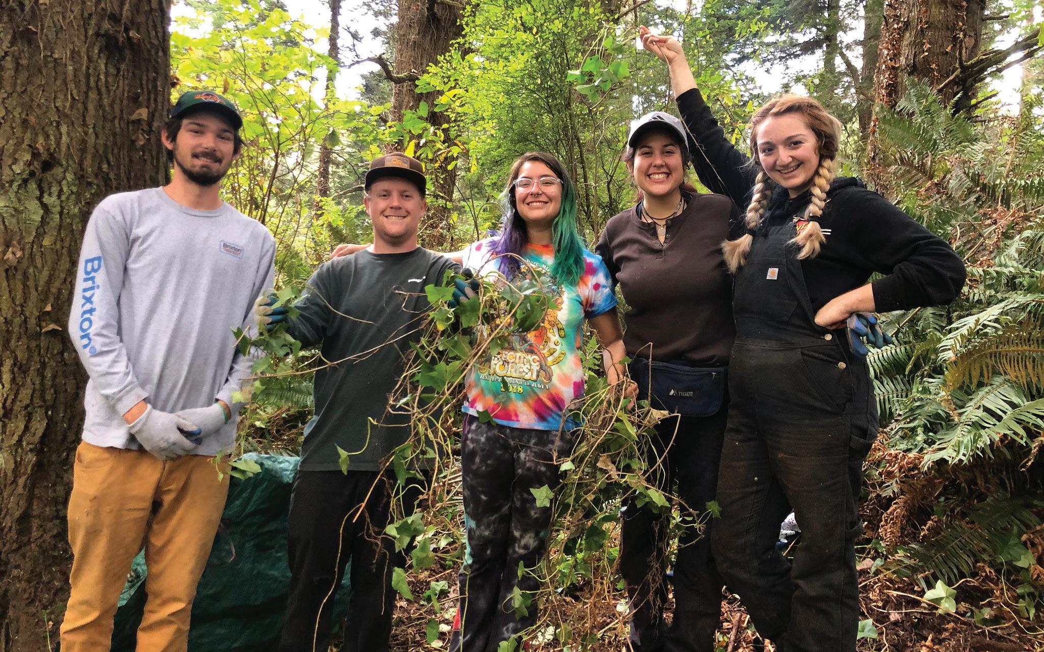 n At TRINIDAD STATE BEACH and SUE-MEG STATE PARK, volunteers focus on restoring the Sitka spruce forest and coastal scrub habitats. Removing non-native plants allows space for more Sitka spruce trees and other native plants to grow. If left unchecked, invasive plants will spread, suppress native vegetation, and overtake entire areas of the park. English ivy is especially tricky, as it is a type of plant that will continue to grow even after being pulled from the soil. A single inch of the stem will create a new plant! As spaces are cleared of invasives, native species return, like false lily of the valley and bracken ferns.
