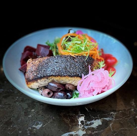 Savor the taste of the coast with house candied salmon crowned by the Old Bay spice rim. It’s an ode to our waters and the bounty they provide.