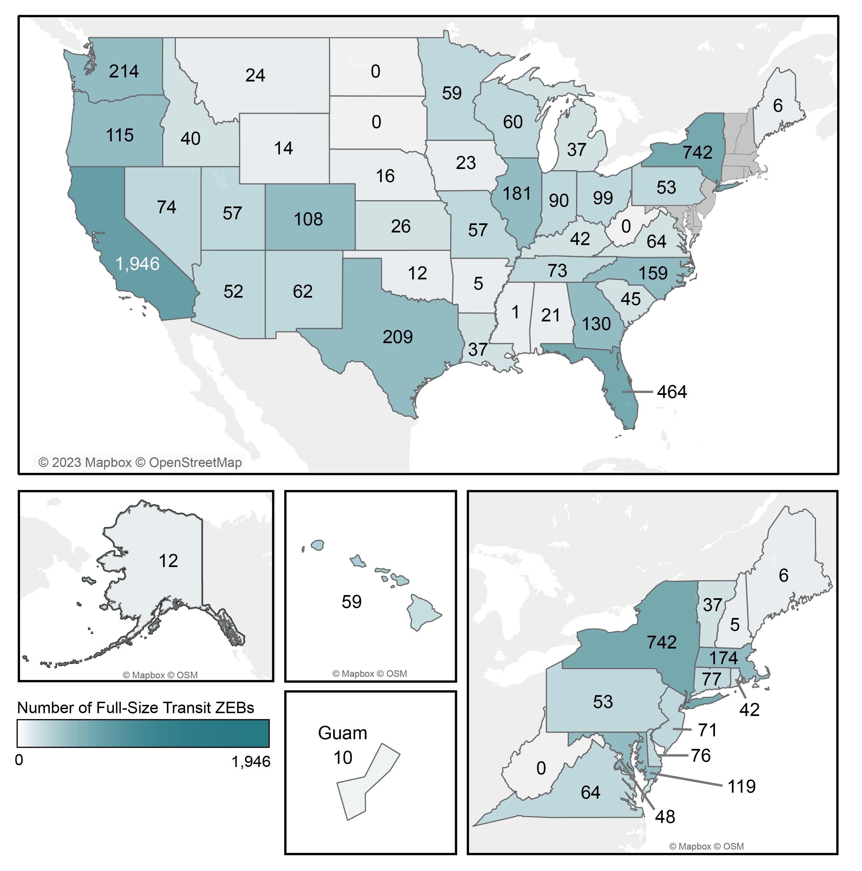 State-By-State Full-Size Transit ZEB Distribution (As of September 2023)