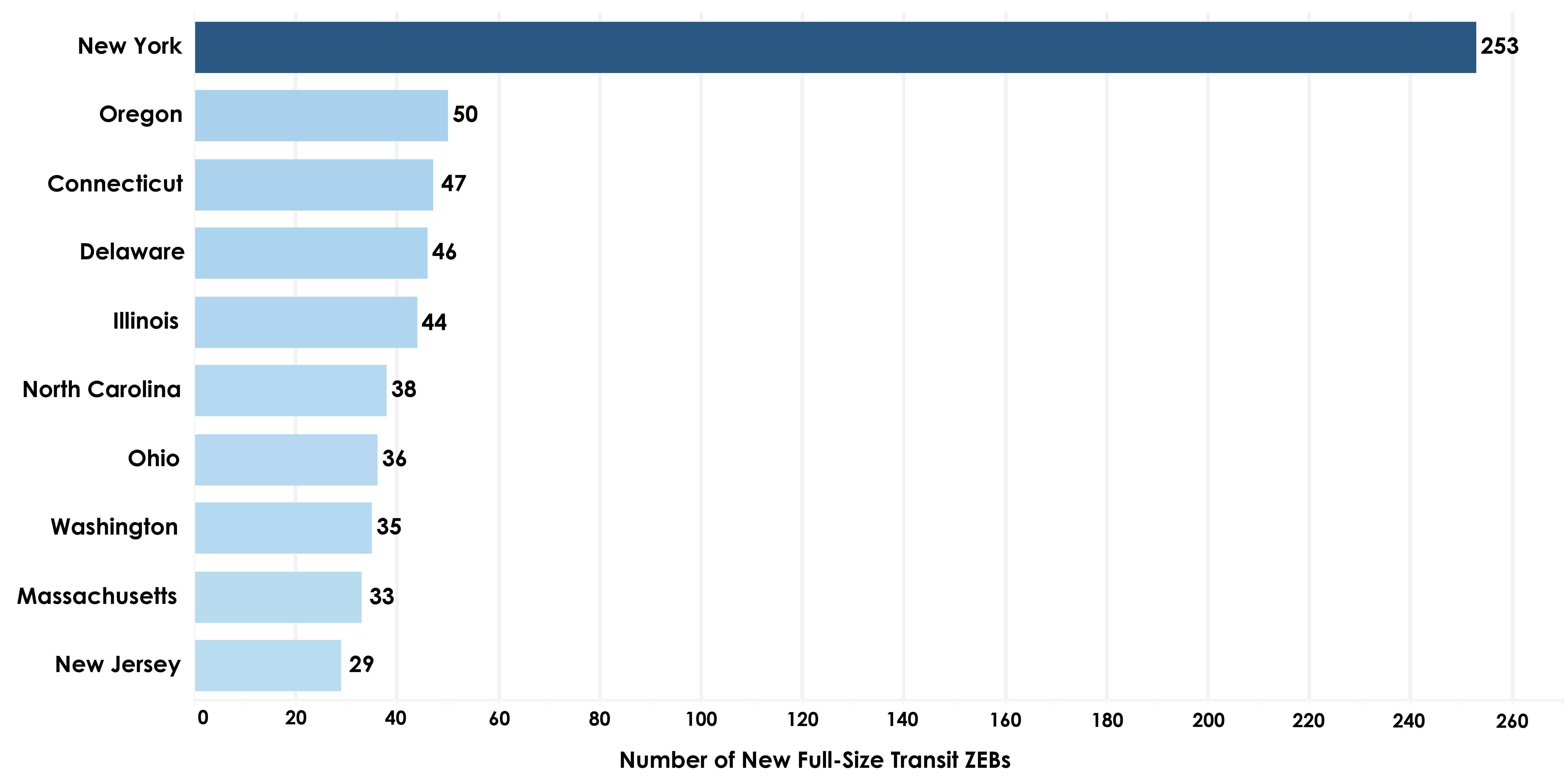 Figure 3. Top 10 States with Largest Numerical Increases in Full-Size Transit ZEB Adoption (Compared to 2022)