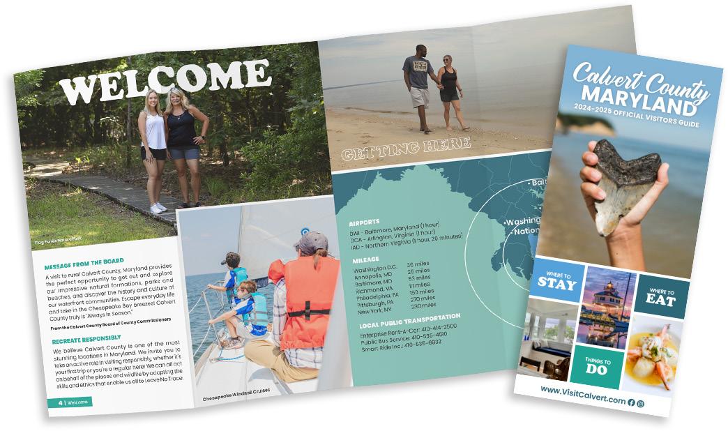 The team was also excited to work on a redesign of the Calvert County Visitors Guide that became available in early 2024. To view or request a copy, visit our website at www.VisitCalvert.com/Brochure