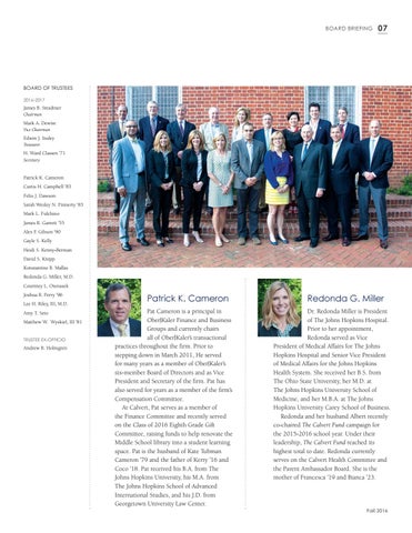 Patrick K. Cameron Curtis H. Campbell ’83 Felix J. Dawson Sarah Wesley N. Finnerty ’83 Mark L. Fulchino James R. Garrett ’55 Alex F. Gibson ’90 Gayle S. Kelly Heidi S. Kenny-Berman David S. Knipp Konstantine B. Mallas Redonda G. Miller, M.D. Courtney L. Otenasek Joshua R. Perry ’96 Lee H. Riley, III, M.D. Amy T. Seto Matthew W. Wyskiel, III ’81 TRUSTEE EX-OFFICIO