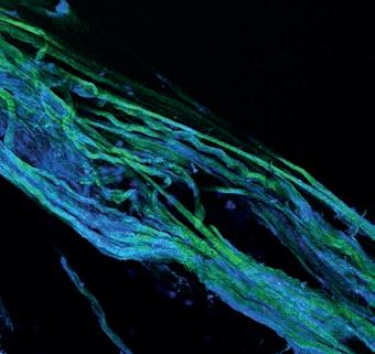 photo depicts microscopic tendon cells taken in Professor Melinda Duer’s lab.