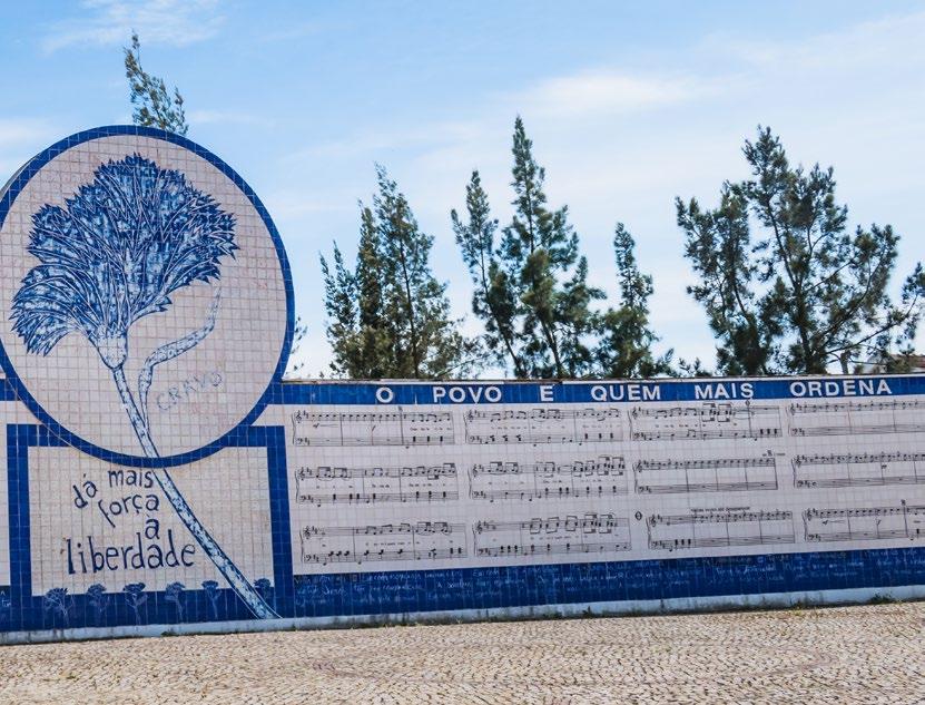 lício, é formado por um painel de azulejos pintados à mão, que representam, além do icónico cravo, excertos da pauta musical e da letra de “Grândola, Vila Morena”, os nomes de alguns dos “Capitães de Abril” e a “Declaração Universal dos Direitos do Homem”. A obra está assente numa plataforma de calçada portuguesa, onde está exposto outro elemento icónico do 25 de Abril: um tanque de guerra, a representar o papel das Forças Armadas na Revolução.