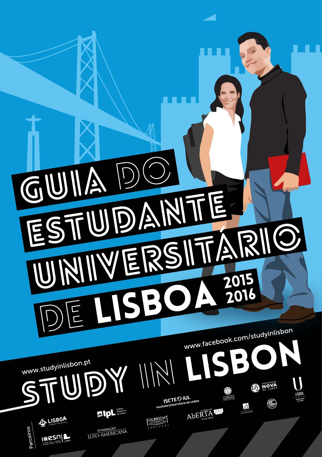 FICHA TÉCNICA EDIÇÃO CÂMARA MUNICIPAL DE LISBOA SECRETARIA GERAL E DIREÇÃO MUNICIPAL DE ECONOMIA E INOVAÇÃO COORDENAÇÃO ALBERTO LAPLAINE GUIMARAÏS PAULO SOEIRO DE CARVALHO SUSANA CORVELO EQUIPA ANA ATAÍDE MASCARENHAS CARLA BARROS DÁLIA PINHEIRO HELENA BENYOUCEF INÊS VICENTE LUÍS MONIZ TIAGO ESTÊVÃO TÍTULO STUDY IN LISBON GUIA DO ESTUDANTE UNIVERSITÁRIO FOTOGRAFIA DANIEL RODRIGUES DEPARTAMENTO DE MARCA E COMUNICAÇÃO (CML) DESIGN LUIS ISIDRO CORREIA ANO 2015