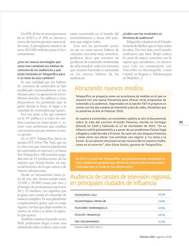 están ocurriendo en el mundo del entretenimiento y hacia allá tenemos que migrar todos. Esto nos ha permitido poner un pie en estos nuevos hábitos de consumo, nos tiene muy contentos, podemos decir que tenemos un productor de contenidos multimedia de talla mundial, todos los formatos que estamos haciendo es pensando en los nuevos hábitos de las audiencias.