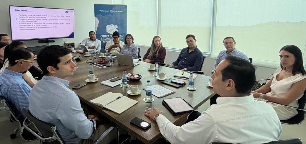 En días recientes, la CCI Seccional Norte realizó el Comité Jurídico, un espacio que contó con la participación de Juan Carlos Quiñones, vicepresidente jurídico de la Cámara Colombiana de la Infraestructura, así como de firmas afiliadas, empresarios potenciales y equipos jurídicos del sector. El encuentro ratificó al Comité Jurídico como un escenario de diálogo técnico y construcción colectiva, con un enfoque multidisciplinario que integra expertos en áreas estratégicas como derecho ambiental, tributario, ordenamiento territorial, estructuración de proyectos, energía e internacionalización. Esta diversidad facilita el análisis de los principales retos del sector desde una perspectiva integral y especializada.