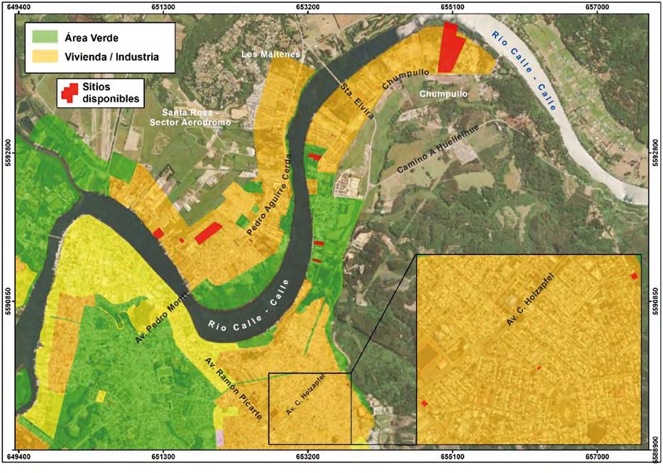 Considerando estos escenarios, se vuelve importante conocer la cantidad de sitios y de hectáreas que se encuentran disponibles, además de su relación con el Plan Regulador Comunal hoy vigente. Sin embargo, no son los únicos datos relevantes teniendo en cuenta la realidad actual de la capital de Los Ríos. El alcance del territorio operacional en cuanto a servicios sanitarios, la calidad de los suelos y aquellos territorios que son considerados humedales urbanos también requieren de examinación.