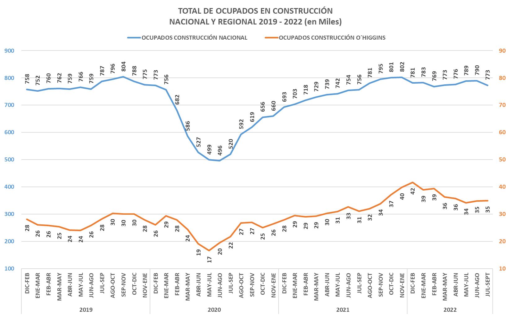 EMPLEO OCUPADOS EN CONSTRUCCIÓN FUENTE: INE. ENCUESTA NACIONAL DE EMPLEO. 35 MIL OCUPADOS CONSTRUC. EN LA REGIÓN 12,5% VARIACIÓN ANUAL REGIONAL 2,2% VARIACIÓN ANUAL NACIONAL