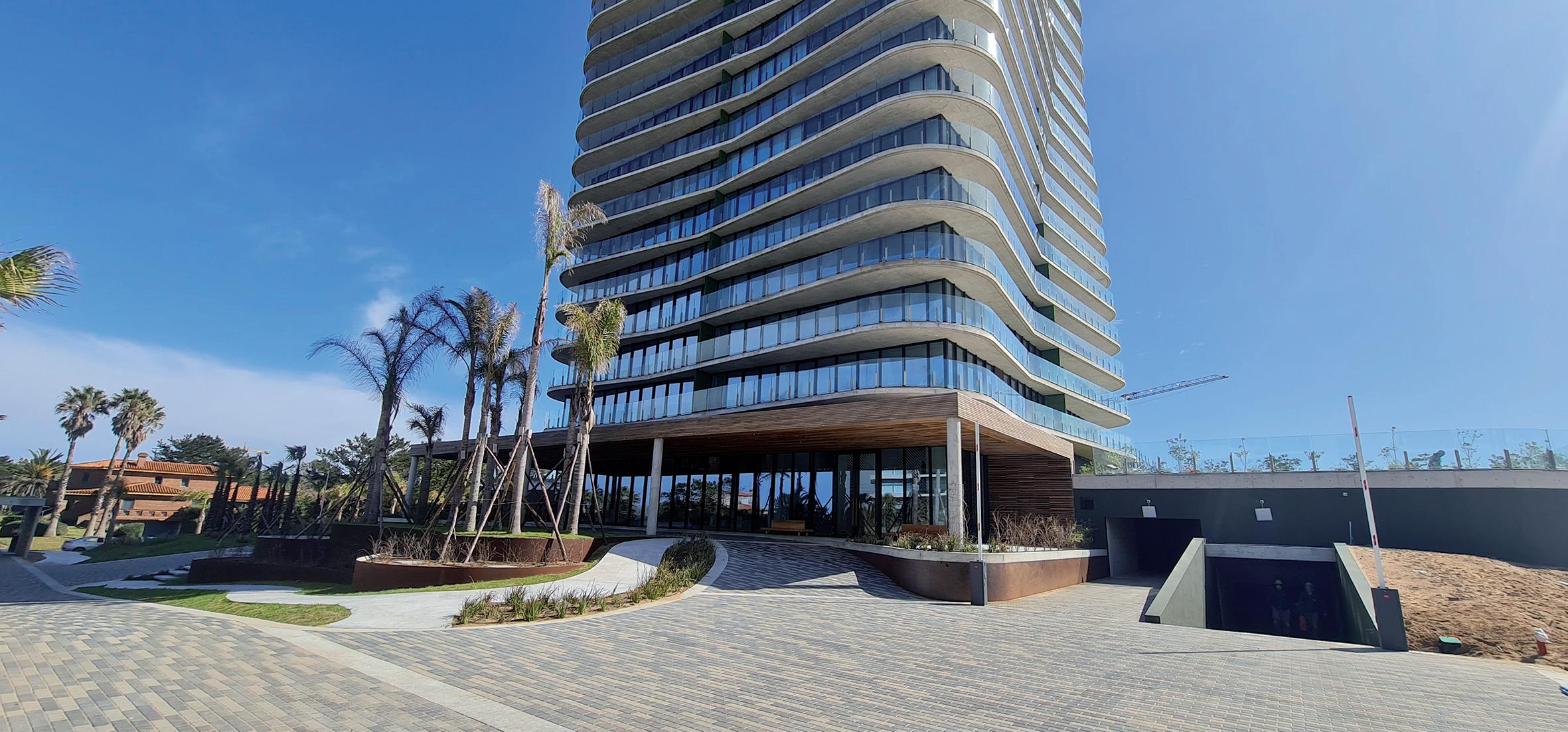 Cruzando el charco, llegamos a Punta del Este, Uruguay, donde se yergue un nuevo edificio en Playa Brava: la Torre Surfside, con cuatro ascensores Fujitec que viajan a tres metros por segundo. La torre se considera una escultura que fusiona poéticamente la arquitectura y su entorno.