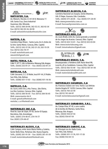 MATERIALES AMG, C.A Av. Louis Braile, entre Av. nueva granada y sociedad de los ciegos las Acacias. Caracas, Dtto. Capital. Telfs.: (0212) 632-14-61 - Fax: (0212) 633-03-04 Web: www.materialesamg.com E-mail: teixeiradesirec@gmail.com 196