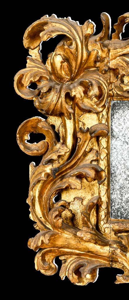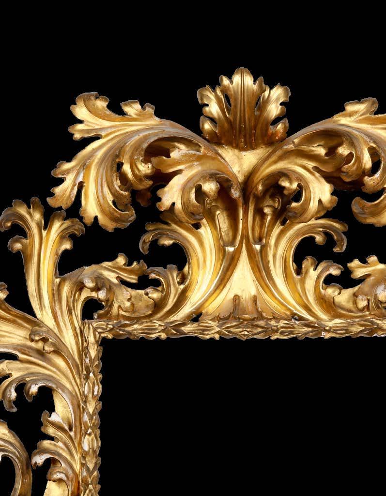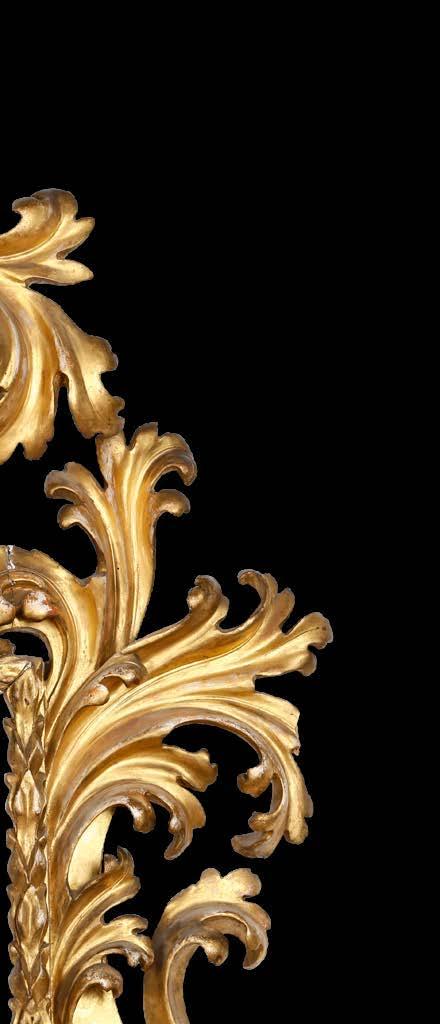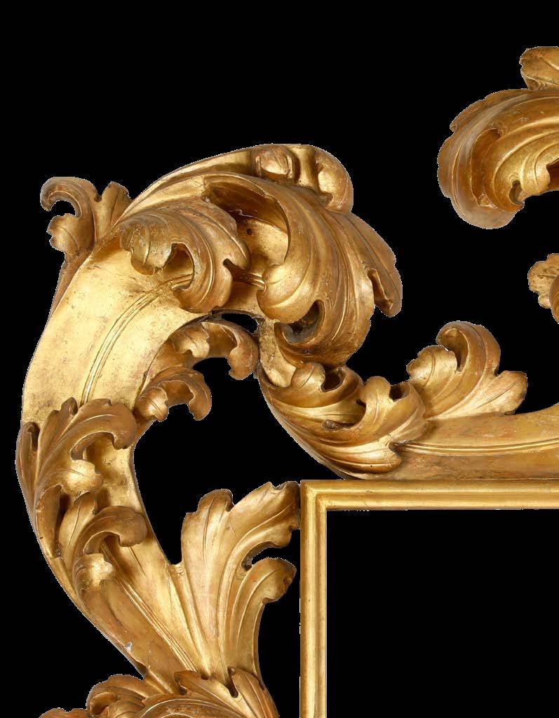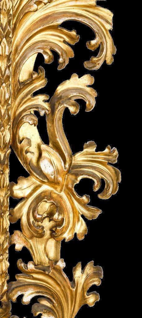 Legno intagliato e dorato decori “alla sansovino” a motivo di doppia voluta e foglie