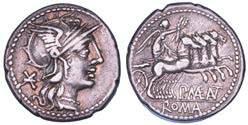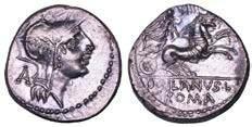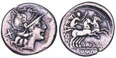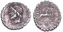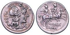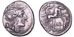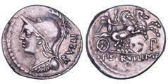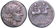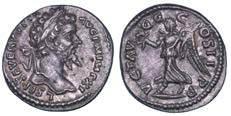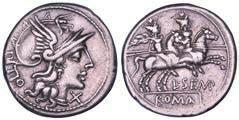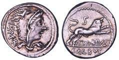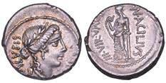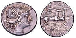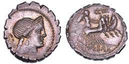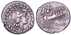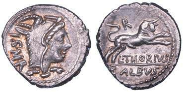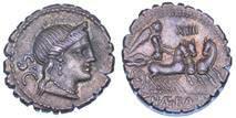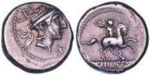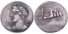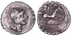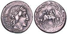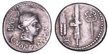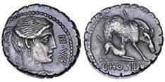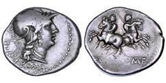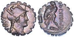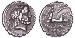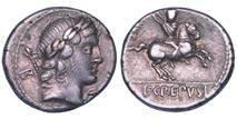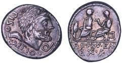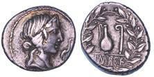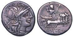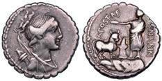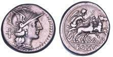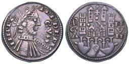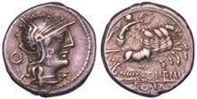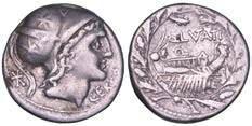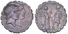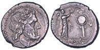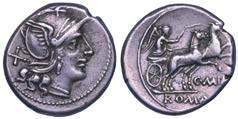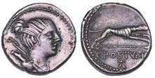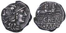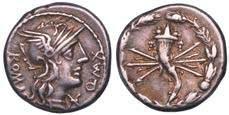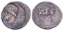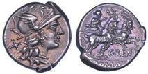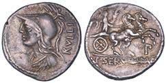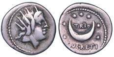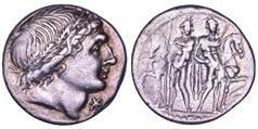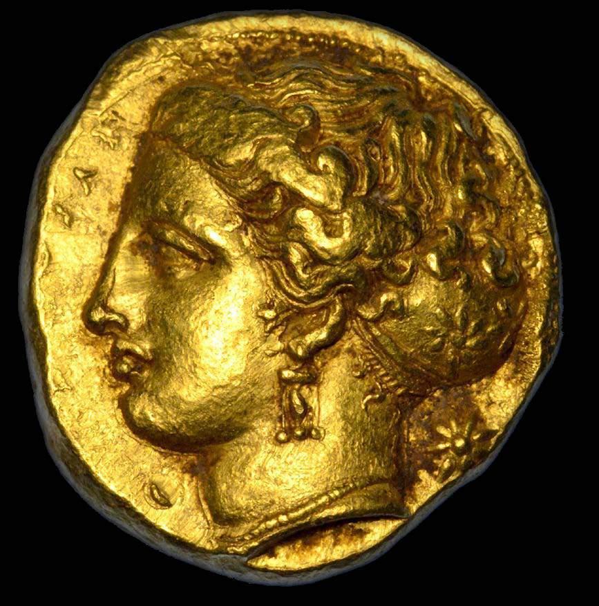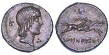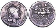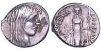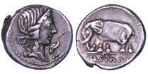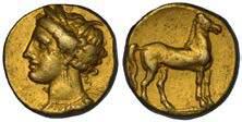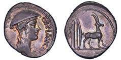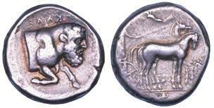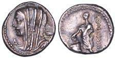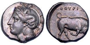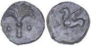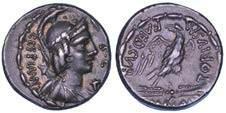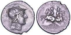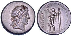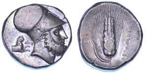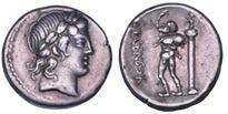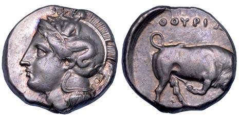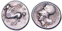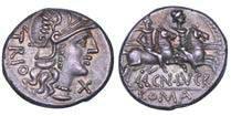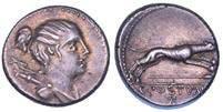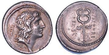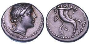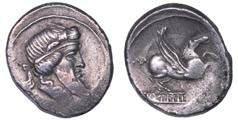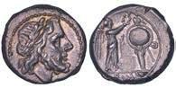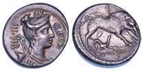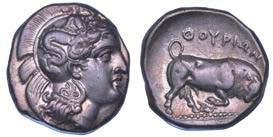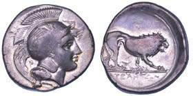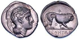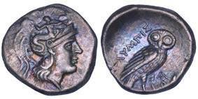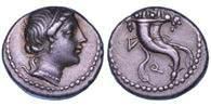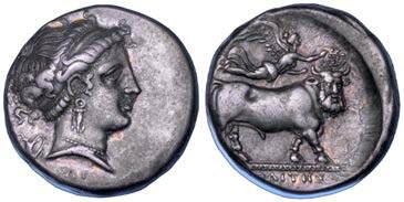 Testa della ninfa Partenope con orecchino ed elegante acconciatura; dietro, kantharos. R/ Toro androcefalo verso d. viene incoronato da Nike in volo; sotto, NEOPOLITHS (non completamente visibile). Sambon 447. Historia Numorum Italy 571. SNG ANS 320. SNG Ashmolean 97. g. 7,47. Diam. mm. 19,62. Arg. BB/SPL