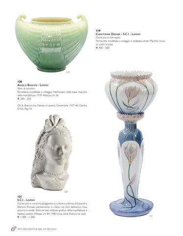 S.C.I. - LAVENO Cache-pot in ceramica poggiante su colonna a forma di balaustra. Decoro floreale parzialmente in rilievo nei toni delbianco, rosa, azzurro e verde. Sotto le basi simbolo grafico della manifattura e Italiana Laveno. Altezza cm 84. 1900 circa. Lieve filatura sul vaso € 1.000 - 1.200