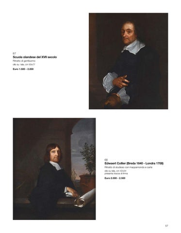 Edwaert Collier (Breda 1640 - Londra 1708) Ritratto di studioso con mappamondo e carte olio su tela, cm 42x34 presenta tracce di firma