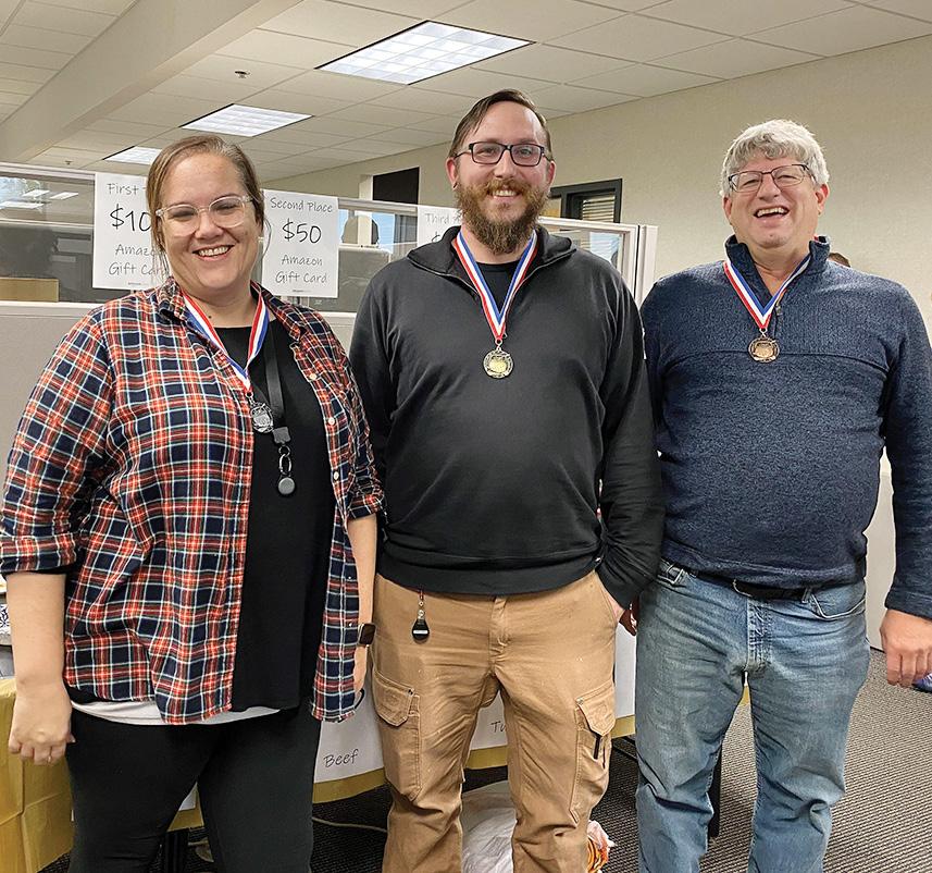 Comin’ in Hot in Belle Plaine! Fueled by culinary talents and unbridled competition, the 2021 IT Chili Cook-off was a smokin’ success. Congrats to the winning chefs. Pictured: 1st Place, Tim Wiech, IT, Eden Prairie, 2nd Place, Mandy Carrasquillo, Business Partner Services, Eden Prairie, and 3rd Place, Terry Dobie, IT, Belle Plaine.