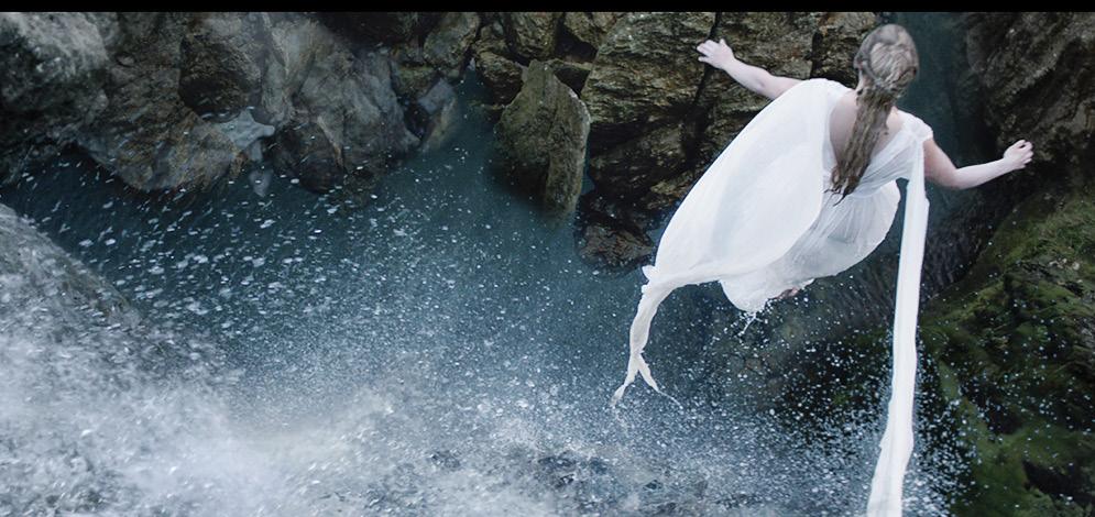 Aeres. We had an enormous crane and a stunt woman in a wetsuit (it may look sunny but it was only 50 degrees) suspended from the crane in the rushing waterfall for about two hours. Watching the craftsmen and women on set bring this together across an entire day was truly amazing.