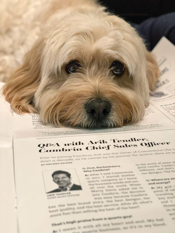 Special delivery for Marina Galassi, Sales, Elk Grove Village! Marina brought little Bentley home and received her first issue of The Cambria Post, all in the same weekend!
