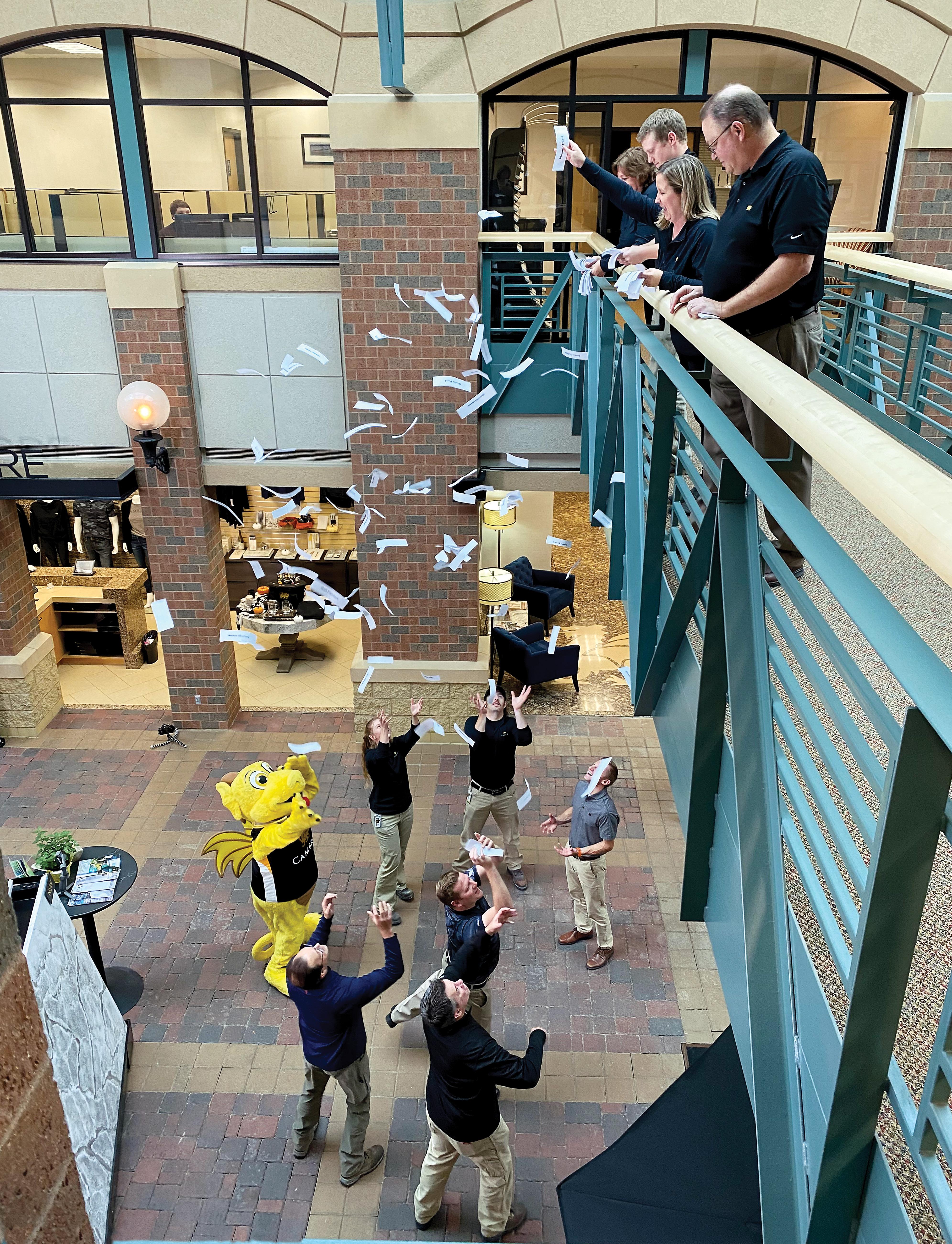 No, that’s not snow falling from the balcony at the Belle Plaine FabShop— those white slips of paper represent safety achievements called out by our own employees. Every month, the Cambria Operations teams are urged to nominate and submit team members for the SAFE* program, and by doing so can win points toward gift cards to popular restaurants, the Apple store, and everything in between. And—to make it even more interesting—every quarter is another drawing and the winner receives bonus points. WooHoo! All in the name of a safe and healthy work environment.