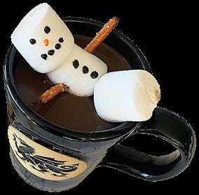 LEFT: Top hot chocolate with whipped cream, candy, and cocoa powder. Design Shown: Big Sur Mist™, Gensler Product Design