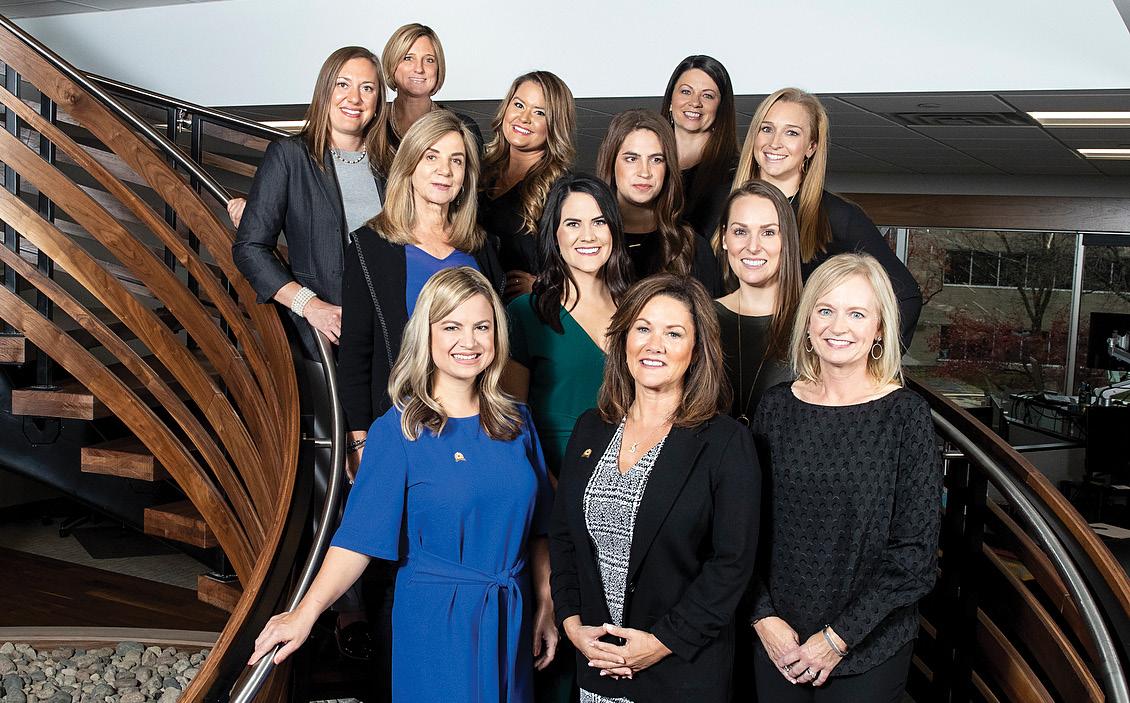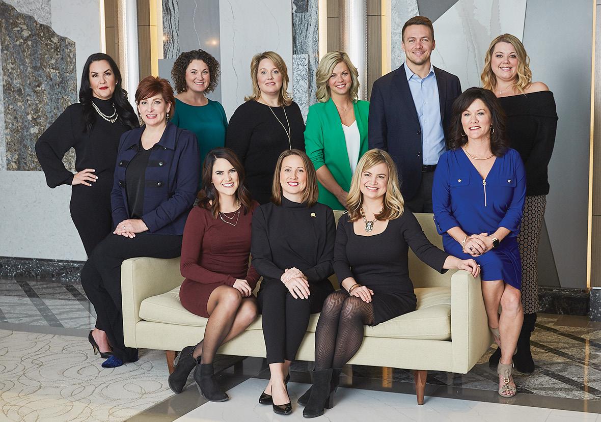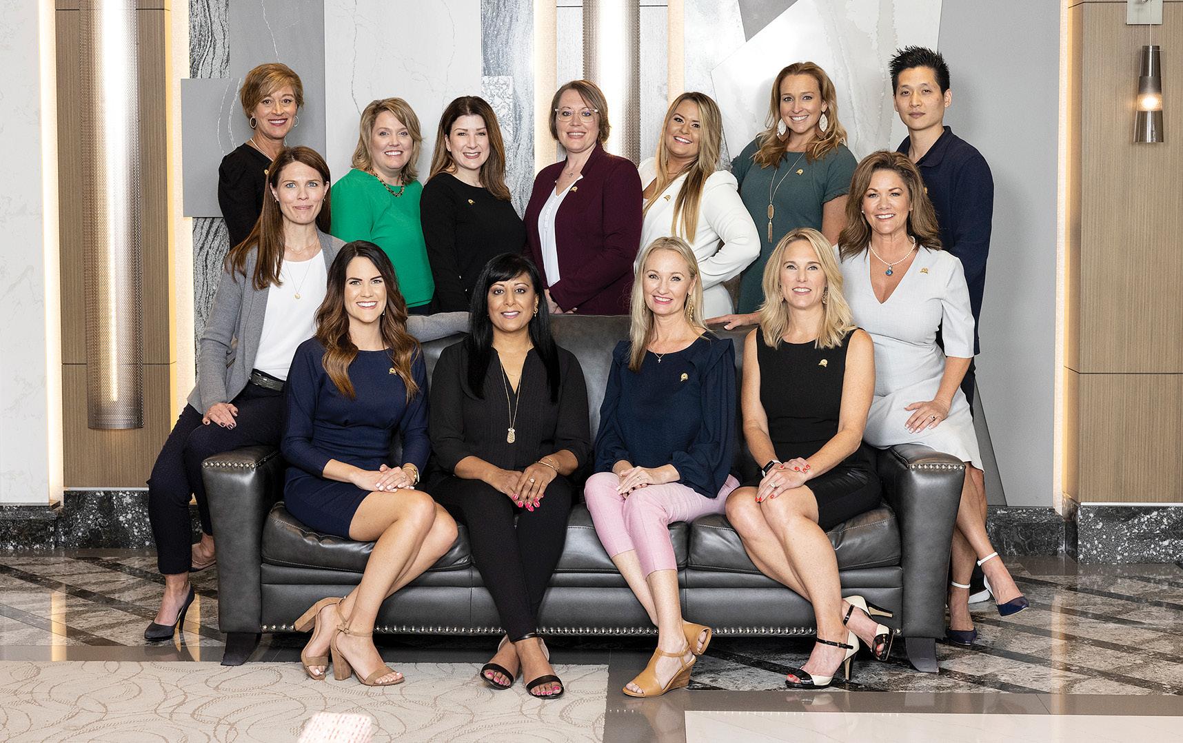 THE PRESIDENT’S CIRCLE CLASS OF 2020. (front row) Shayna Hall; Nina Patel, Core - Cleveland; Courtney Tornblom, Comm. - Dallas; Jennifer Prins, DC - Atlanta; (middle row) Elizabeth Haak, Comm. - Seattle; Christina McCloy,