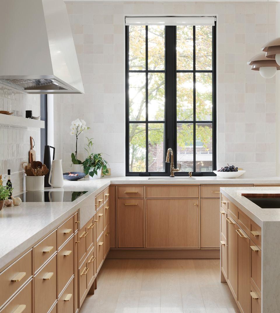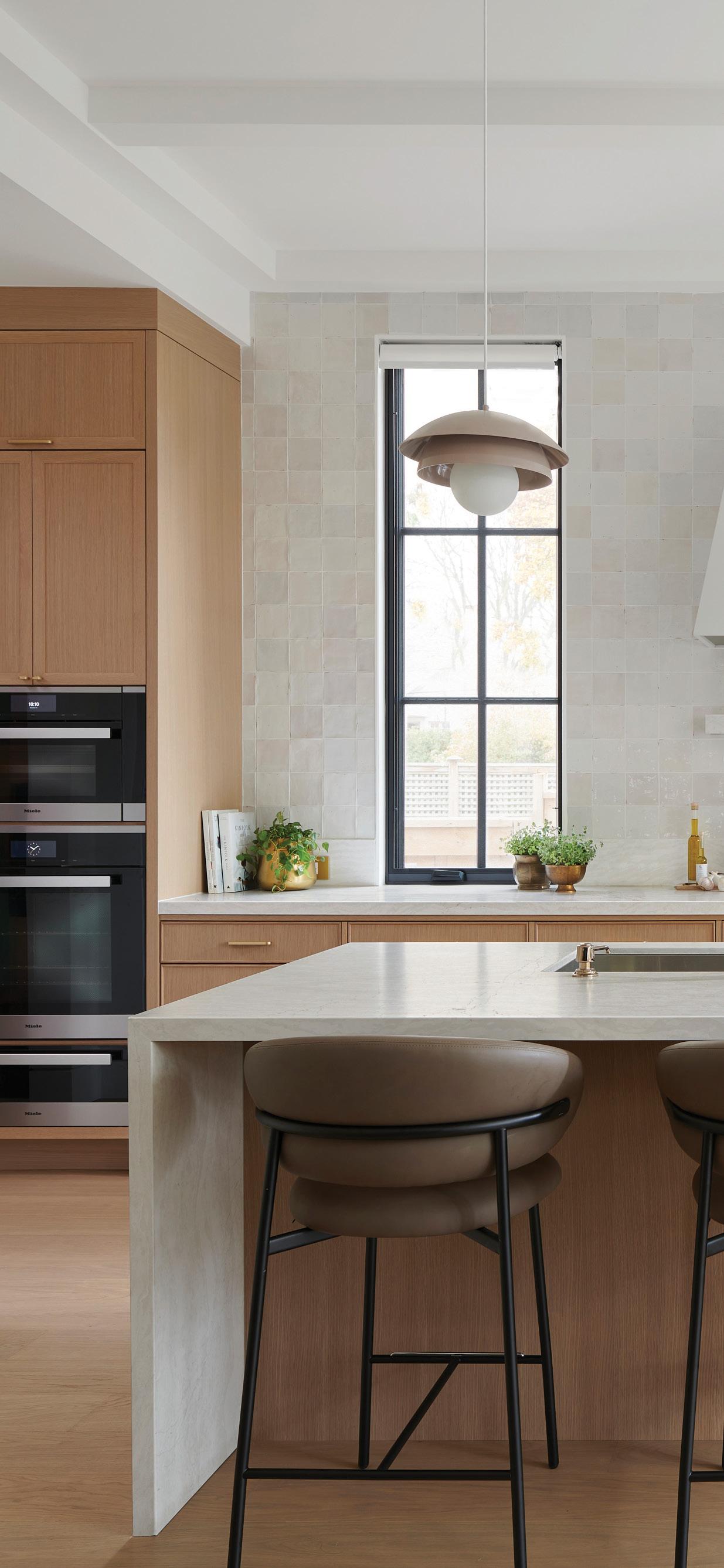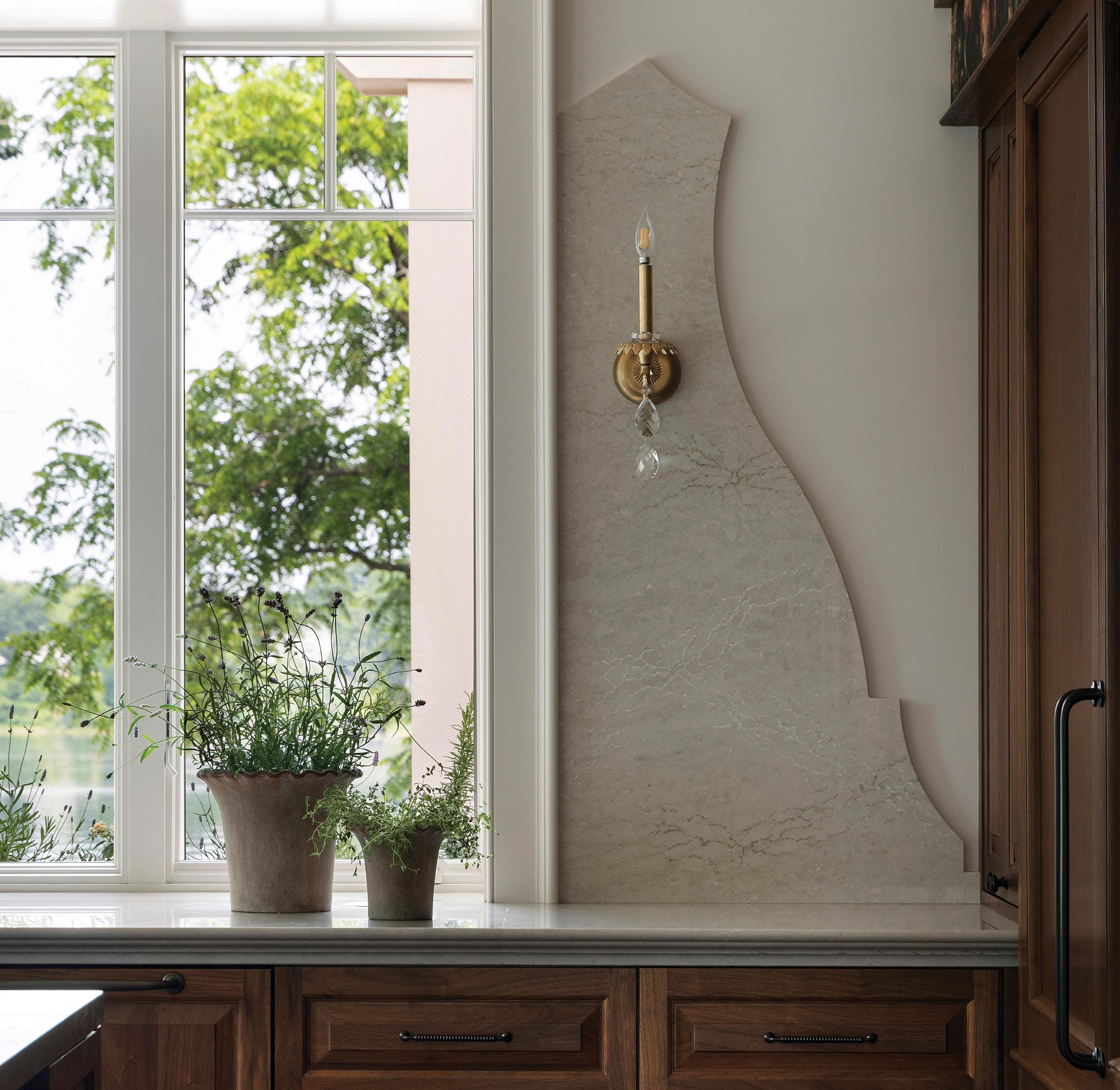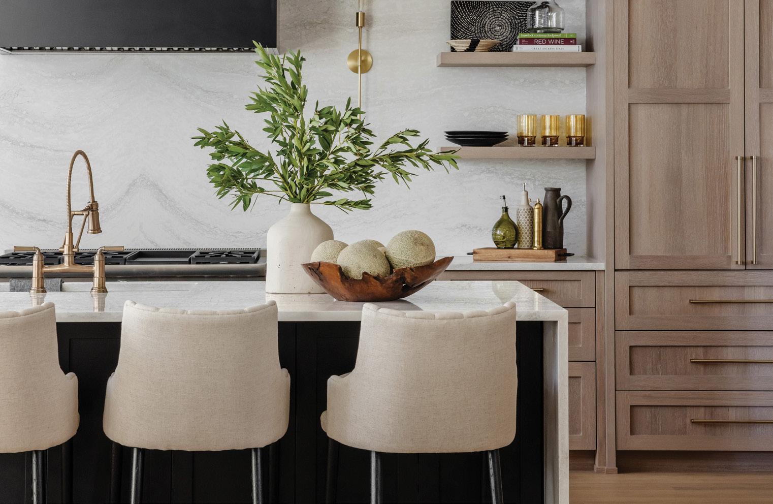The grind of maintenance on her century-old home convinced designer MICHAELA BURNS it was time to start fresh. She worked with an architect on a new build and also collaborated with specialists at Designström to shape a kitchen that is rich with detail while also focused on a neutral palette. Cambria quartz design Delgatie proved the perfect material to create deliberate design elements including an apron in front of the range and a shelf above it—as well as countertops that run flush to the windowsills and cascade down island sides. Still, Burns could have used even more. “I wish I would have just put Cambria everywhere,” she says. “The performance of those countertops in the areas where I put them? It’s just night and day.”