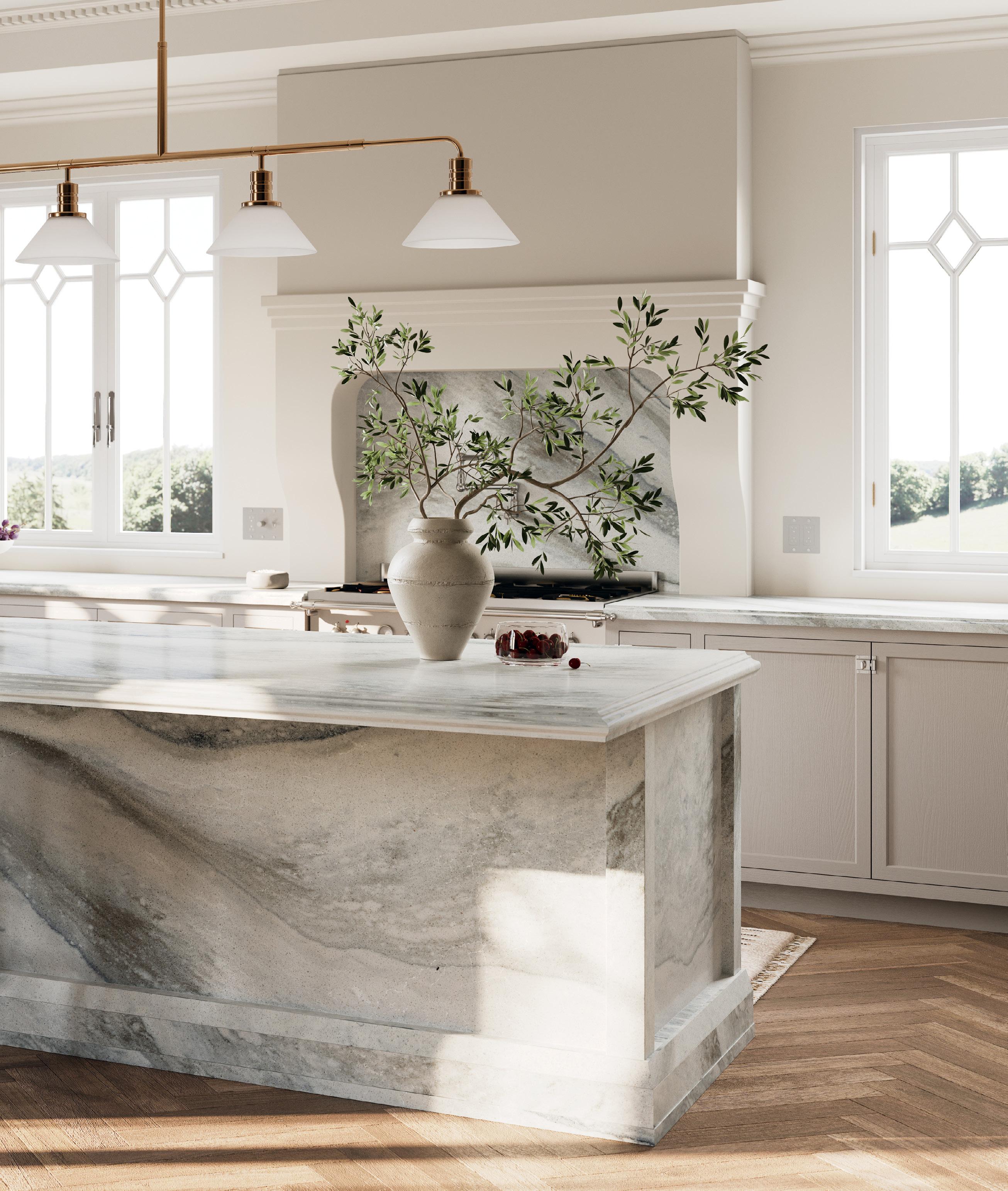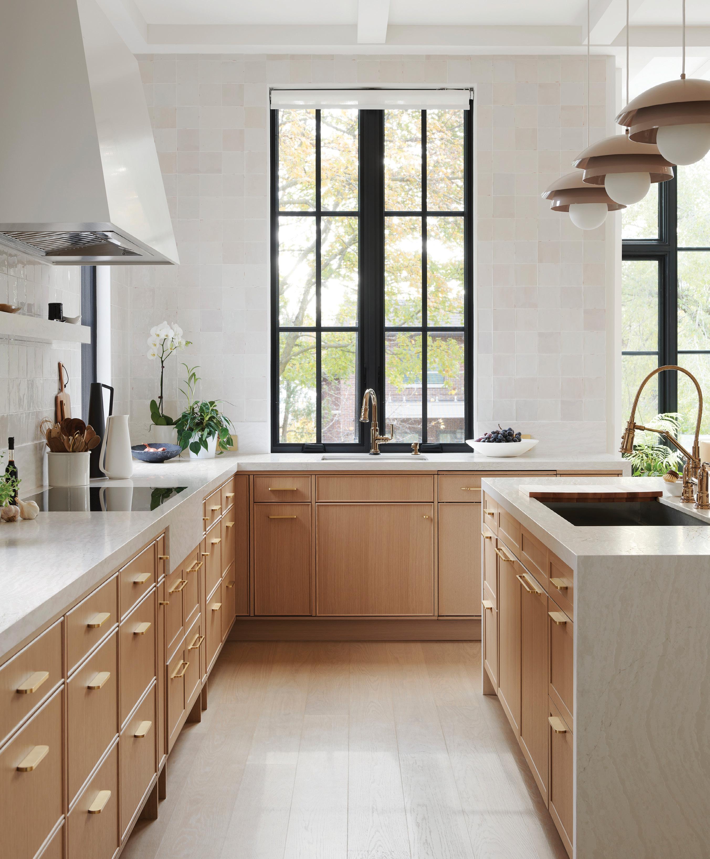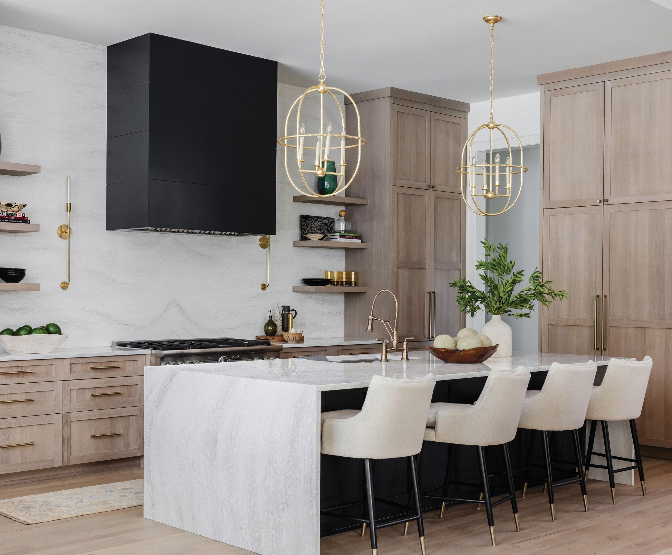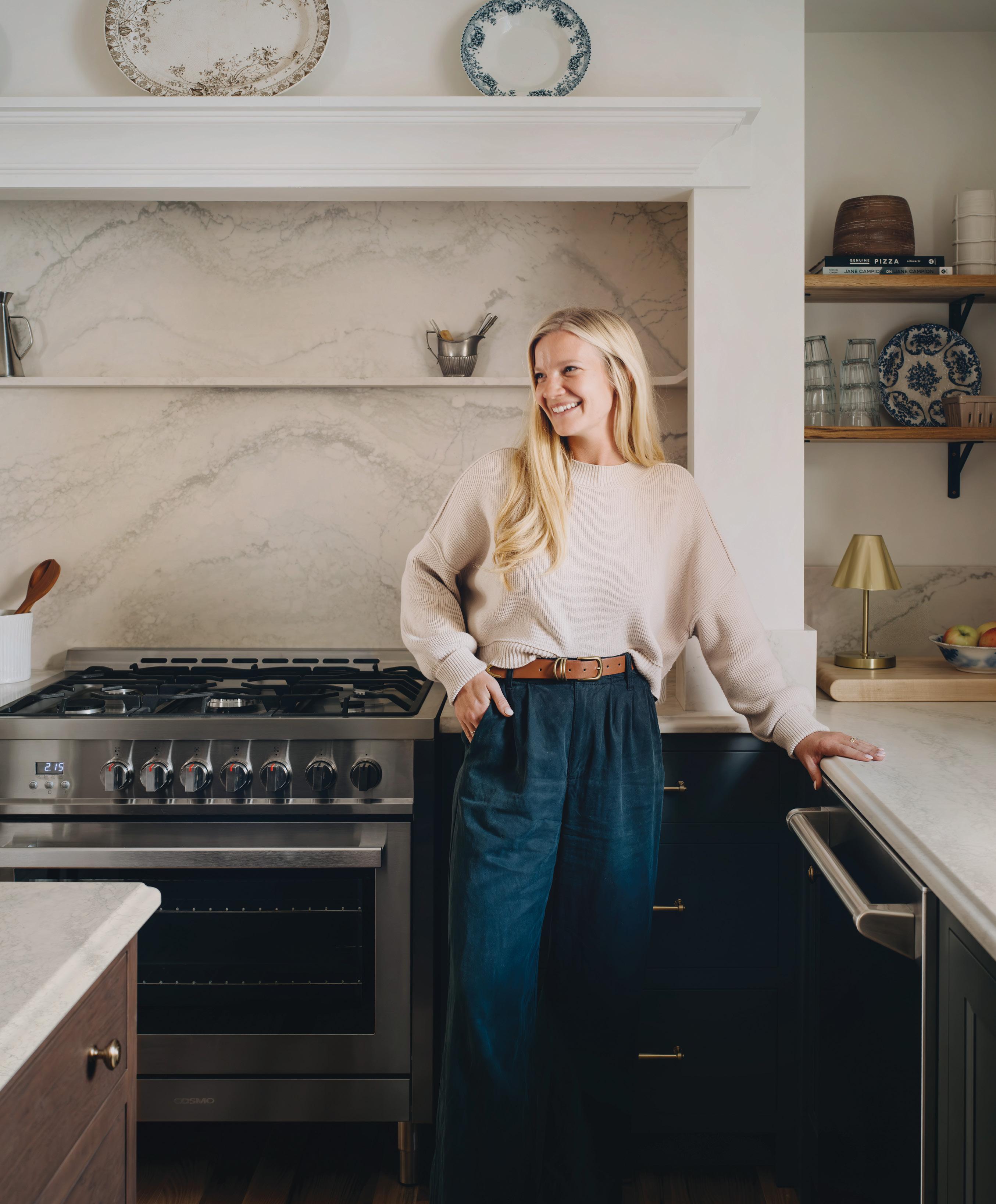 The grind of maintenance on her century-old home convinced designer MICHAELA BURNS it was time to start fresh. She worked with an architect on a new build and also collaborated with specialists at Designström to shape a kitchen that is rich with detail while also focused on a neutral palette. Cambria quartz design Delgatie proved the perfect material to create deliberate design elements including an apron in front of the range and a shelf above it—as well as countertops that run flush to the windowsills and cascade down island sides. Still, Burns could have used even more. “I wish I would have just put Cambria everywhere,” she says. “The performance of those countertops in the areas where I put them? It’s just night and day.”
