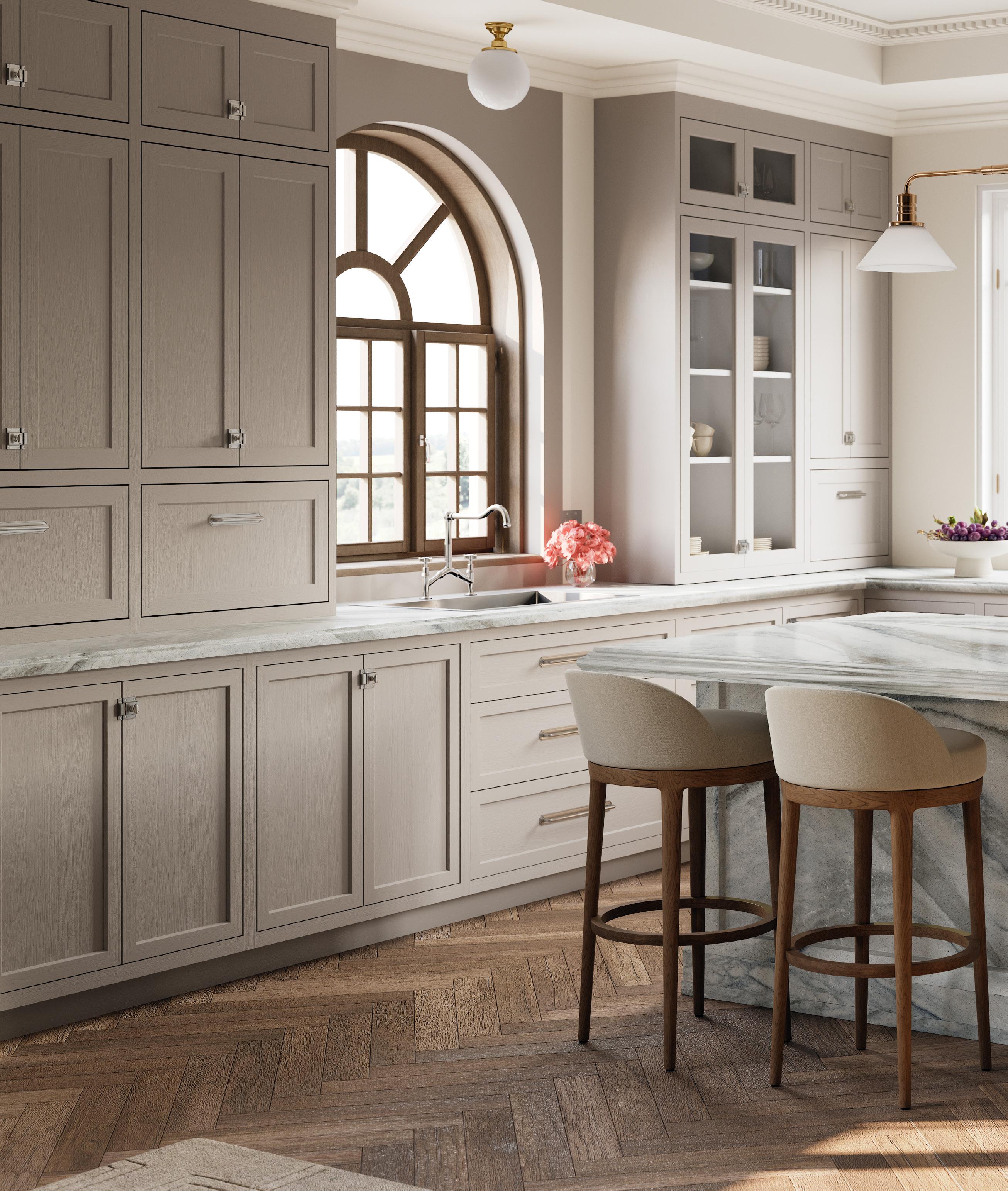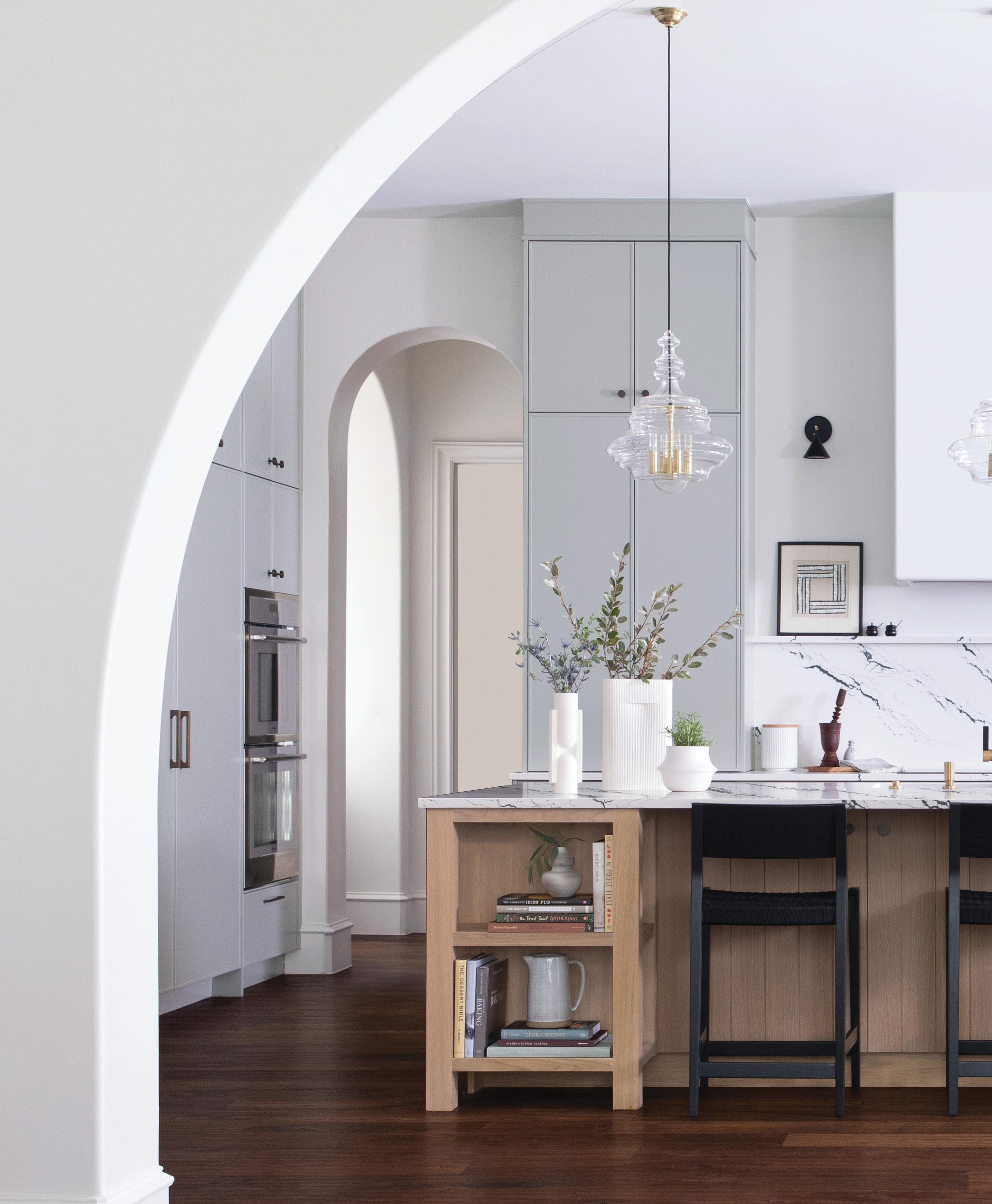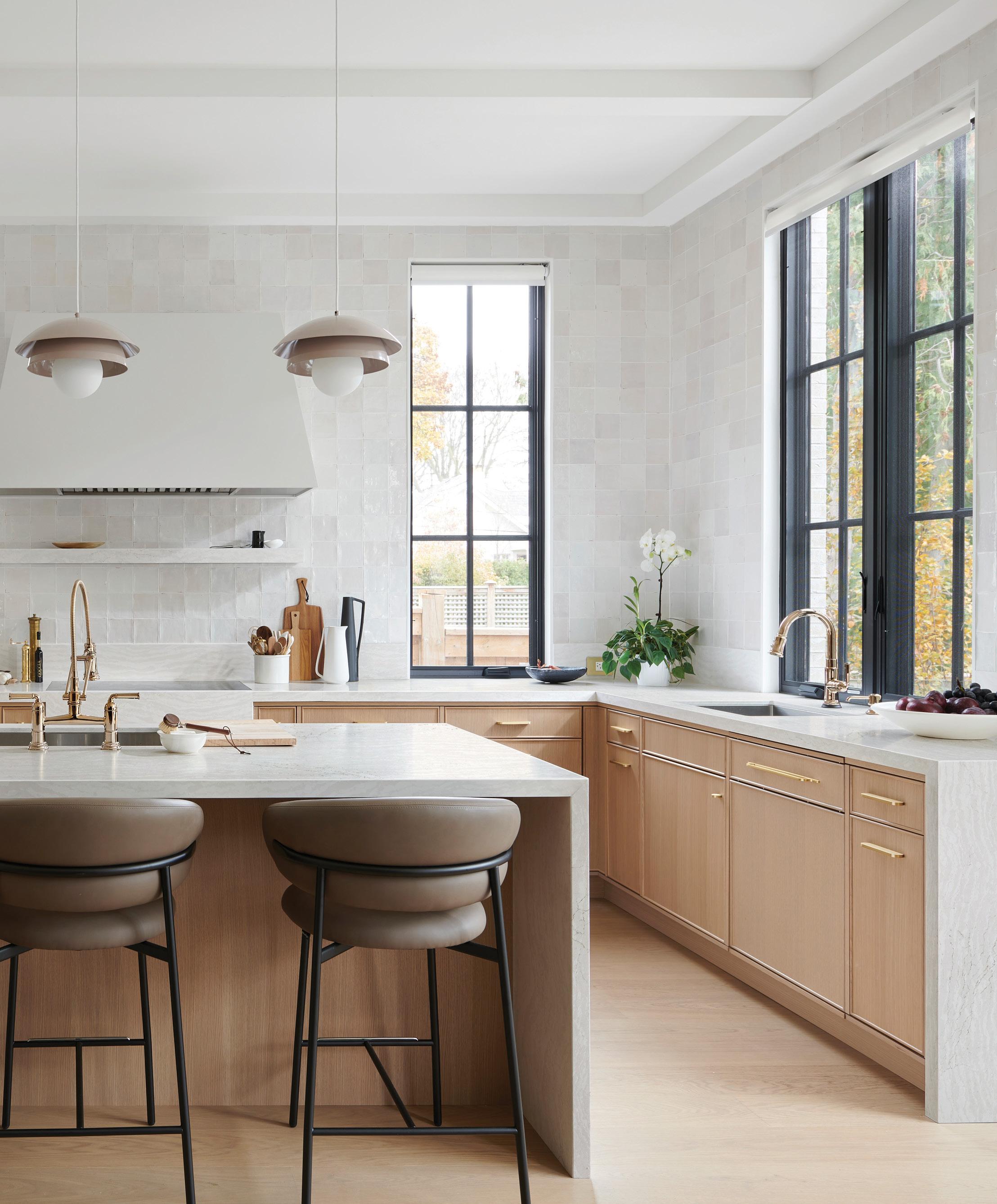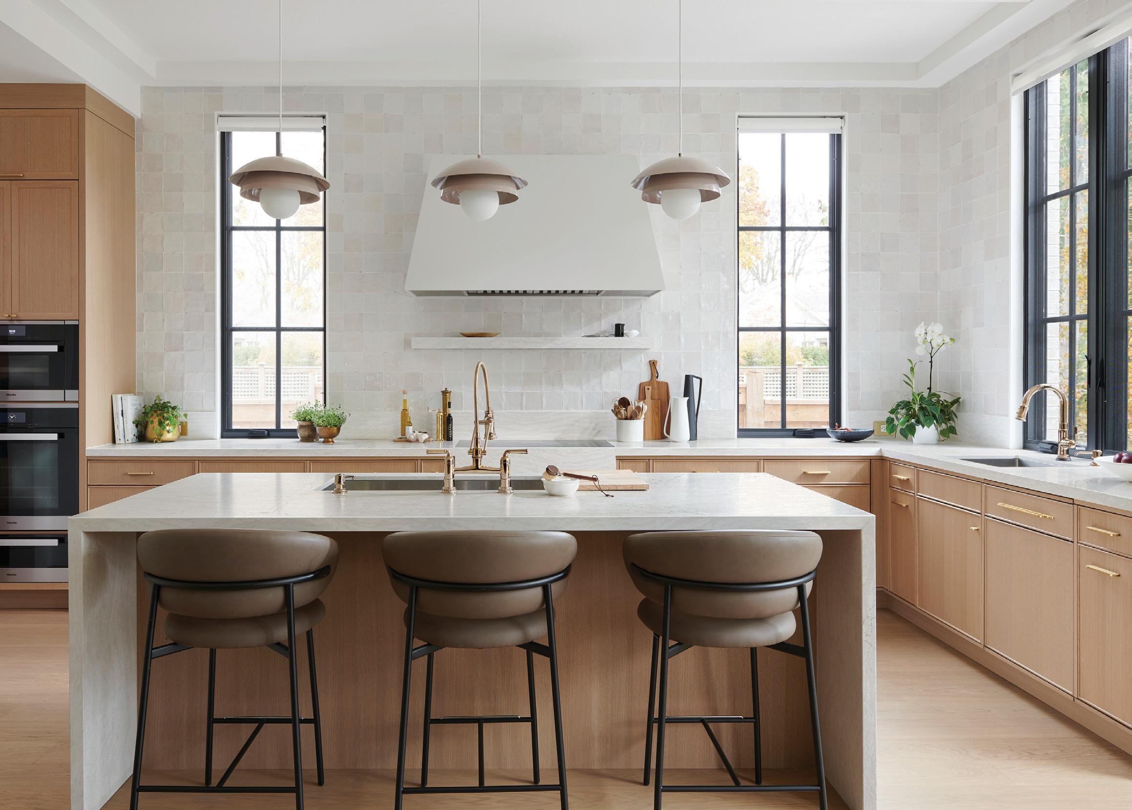 The grind of maintenance on her century-old home convinced designer MICHAELA BURNS it was time to start fresh. She worked with an architect on a new build and also collaborated with specialists at Designström to shape a kitchen that is rich with detail while also focused on a neutral palette. Cambria quartz design Delgatie proved the perfect material to create deliberate design elements including an apron in front of the range and a shelf above it—as well as countertops that run flush to the windowsills and cascade down island sides. Still, Burns could have used even more. “I wish I would have just put Cambria everywhere,” she says. “The performance of those countertops in the areas where I put them? It’s just night and day.”