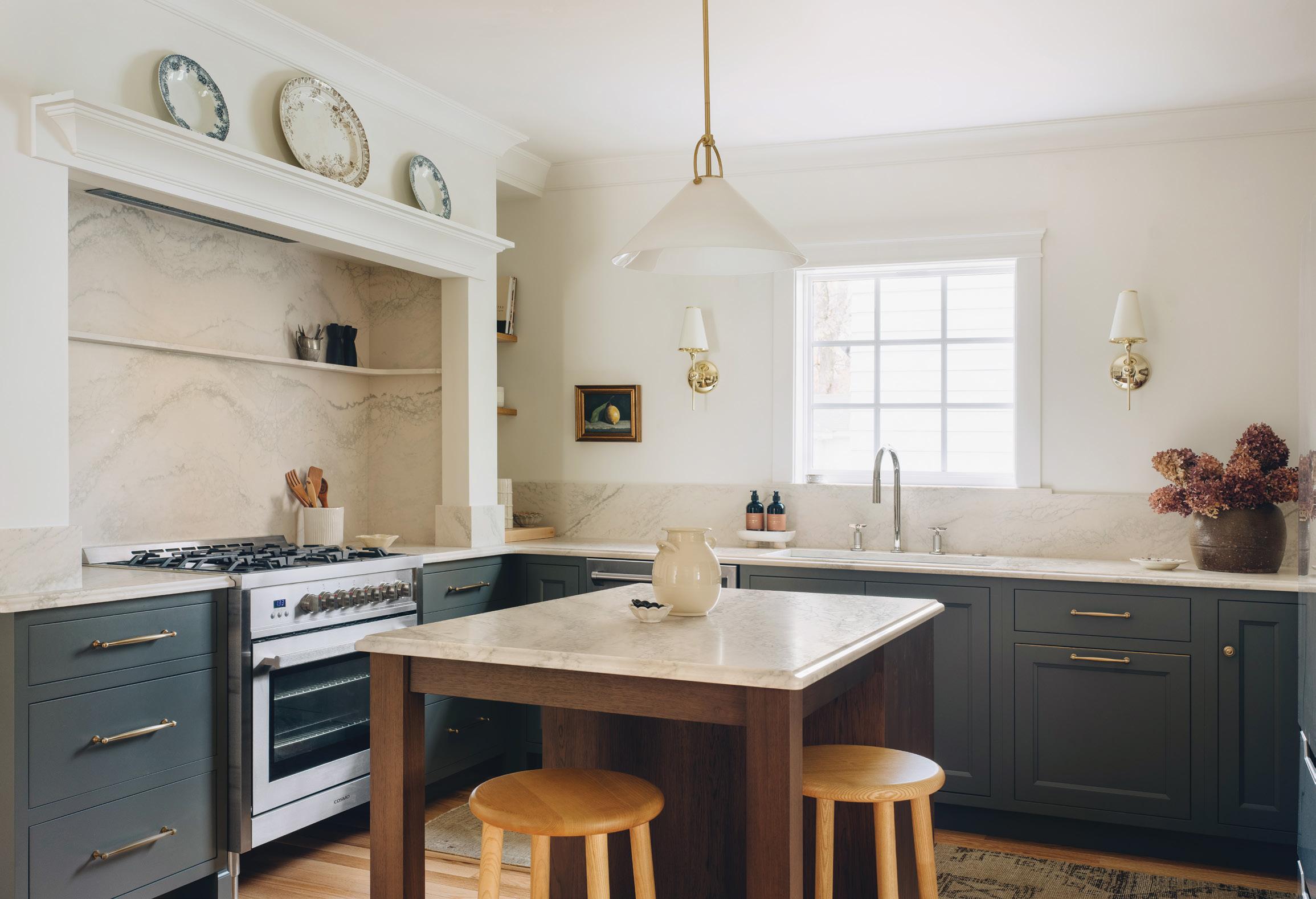 WE HAD THIS CHECKLIST OF WHAT MAKES A GREAT KITCHEN—AN ISLAND, A WINDOW OVER THE SINK—AND I WANTED IT TO FEEL COZY AND INTENTIONAL. CAMBRIA PULLED IT ALL TOGETHER.