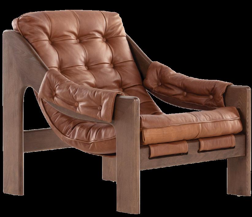 LIVING ROOM PG 26: Wall color in Classic Gray by Benjamin Moore, benjaminmoore.com. Custom sofa upholstered in performance chenille from Kravet, kravet.com. Vintage 70s space age Italian armchairs in brown alkantara